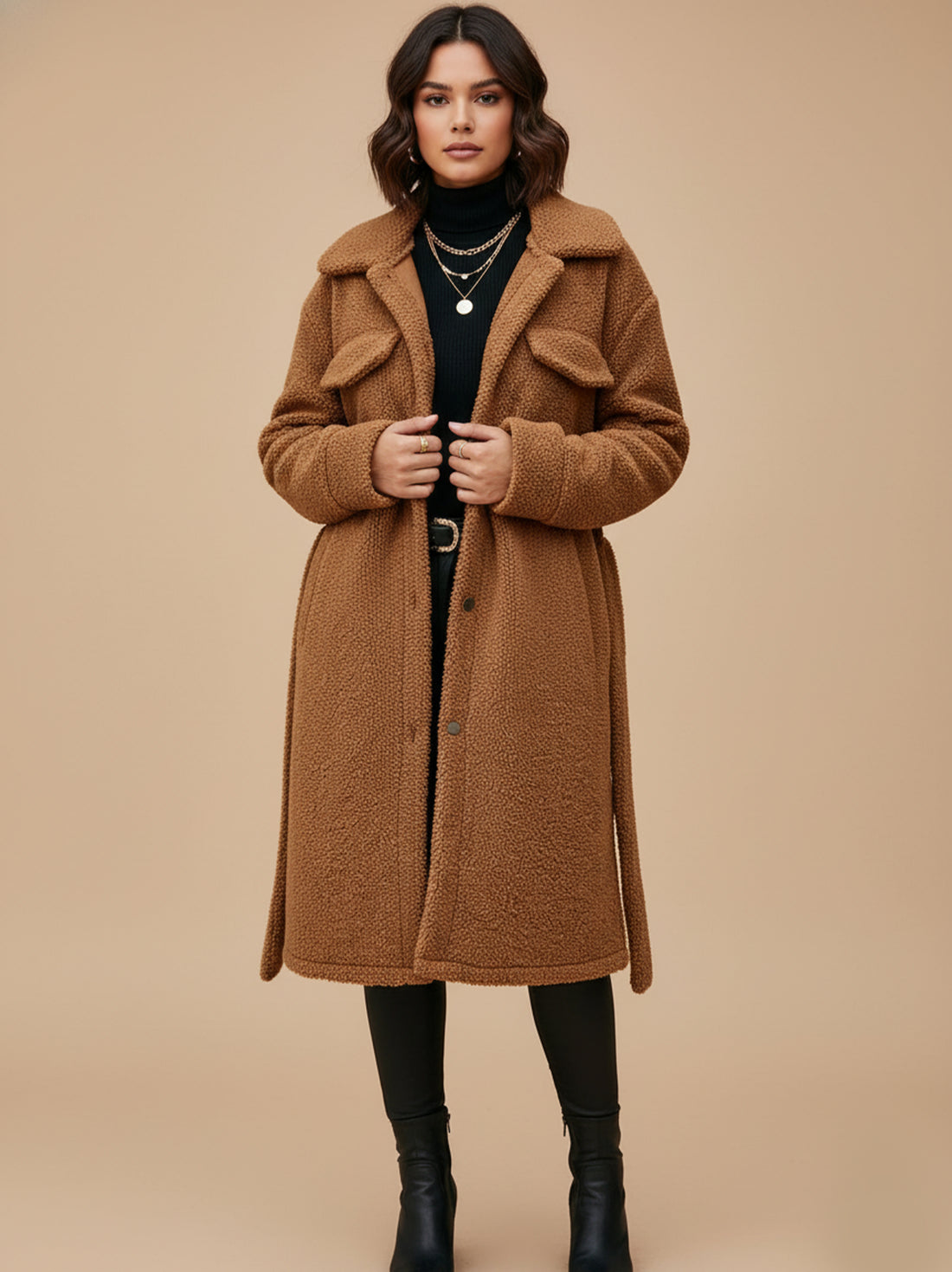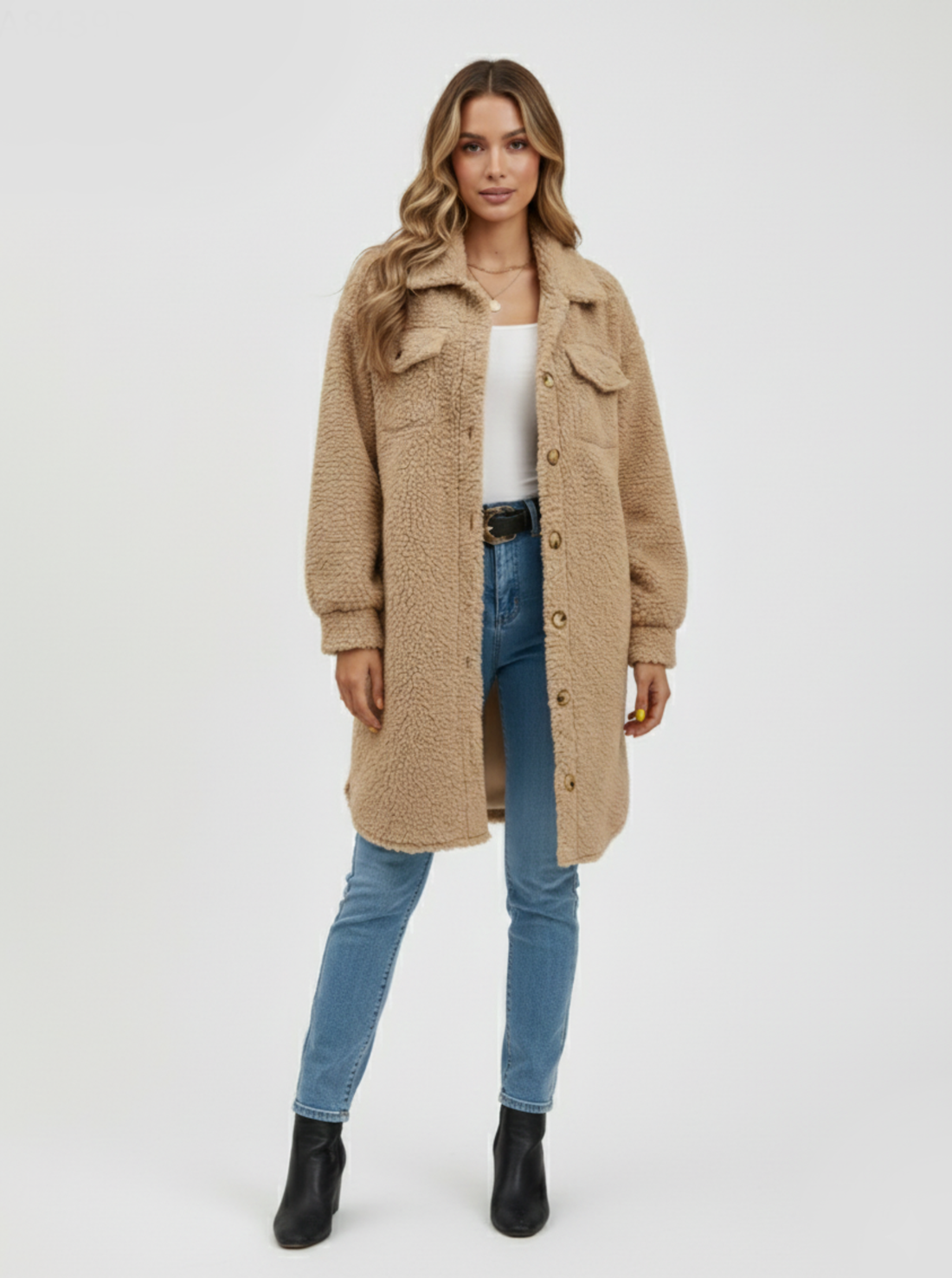 Longline Button-Up Teddy Coat