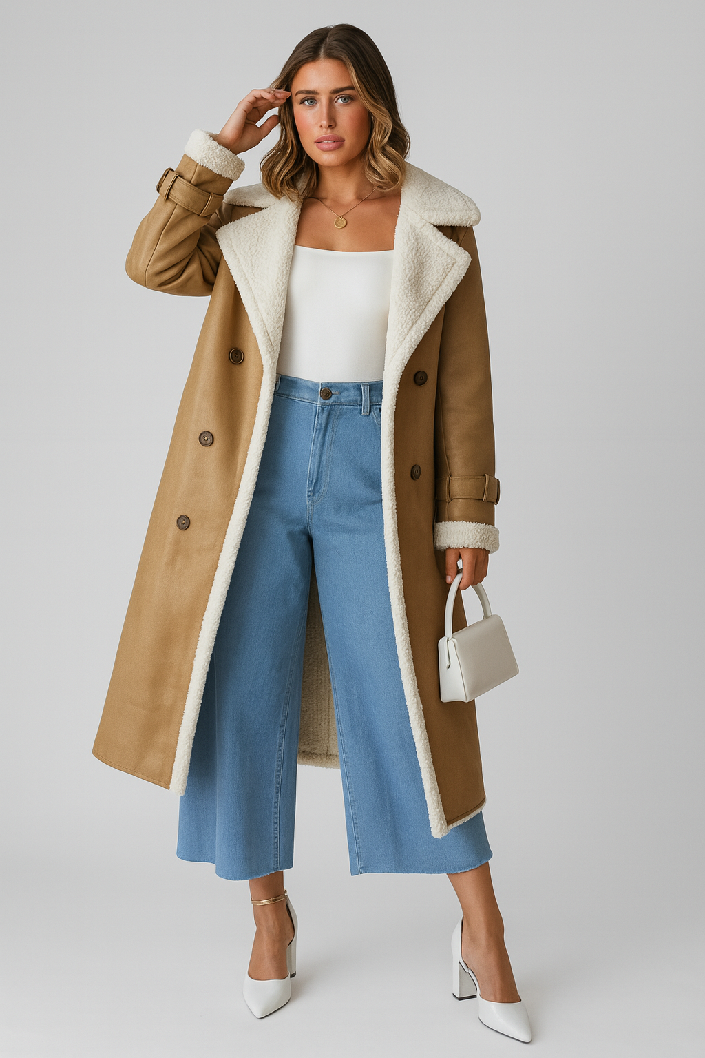 Longline Faux Shearling Trench