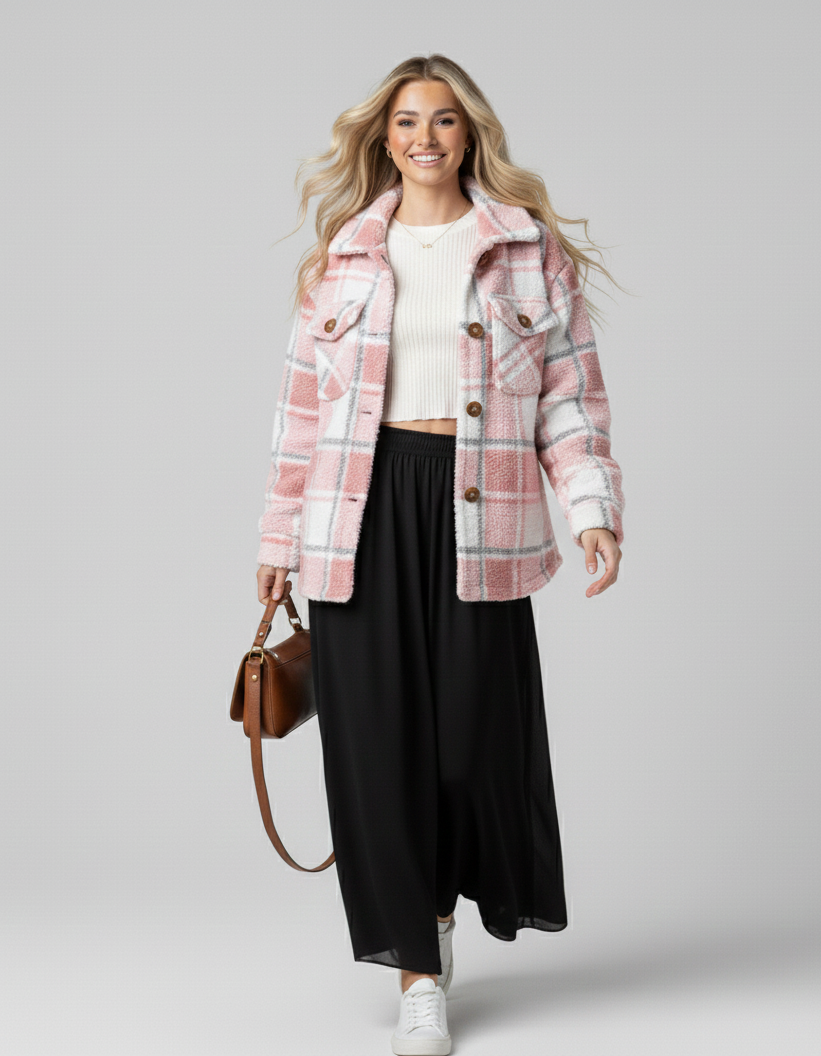Plaid Fleece Button-Up Coat