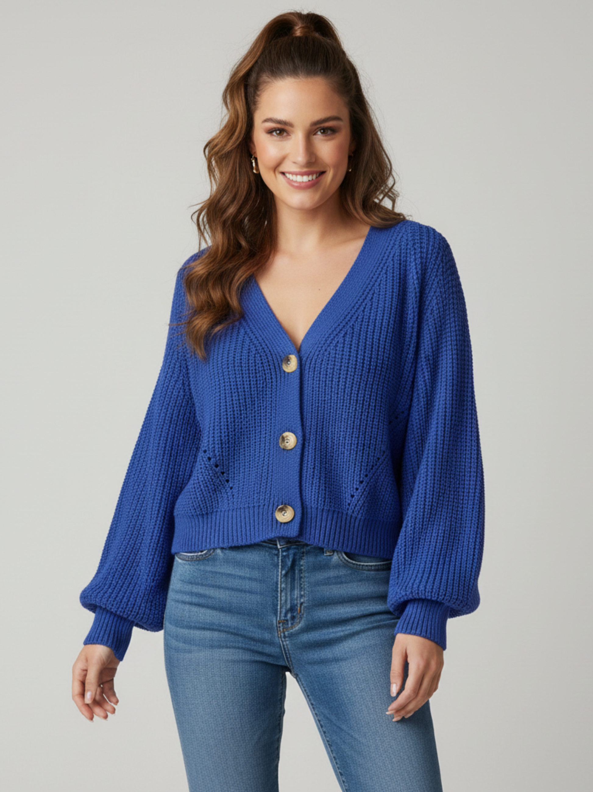 Stay cozy and chic with the Alexa Knitted Cardigan, your go-to piece for effortless layering and timeless style.