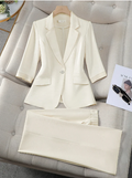 Tailored Blazer: The centerpiece of the set is the impeccably tailored blazer, designed to accentuate your silhouette with its structured yet feminine cut.