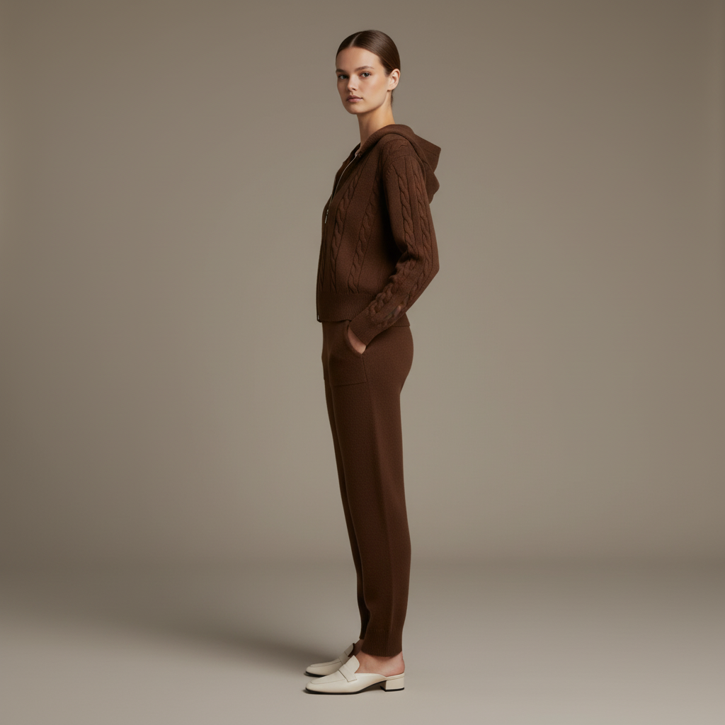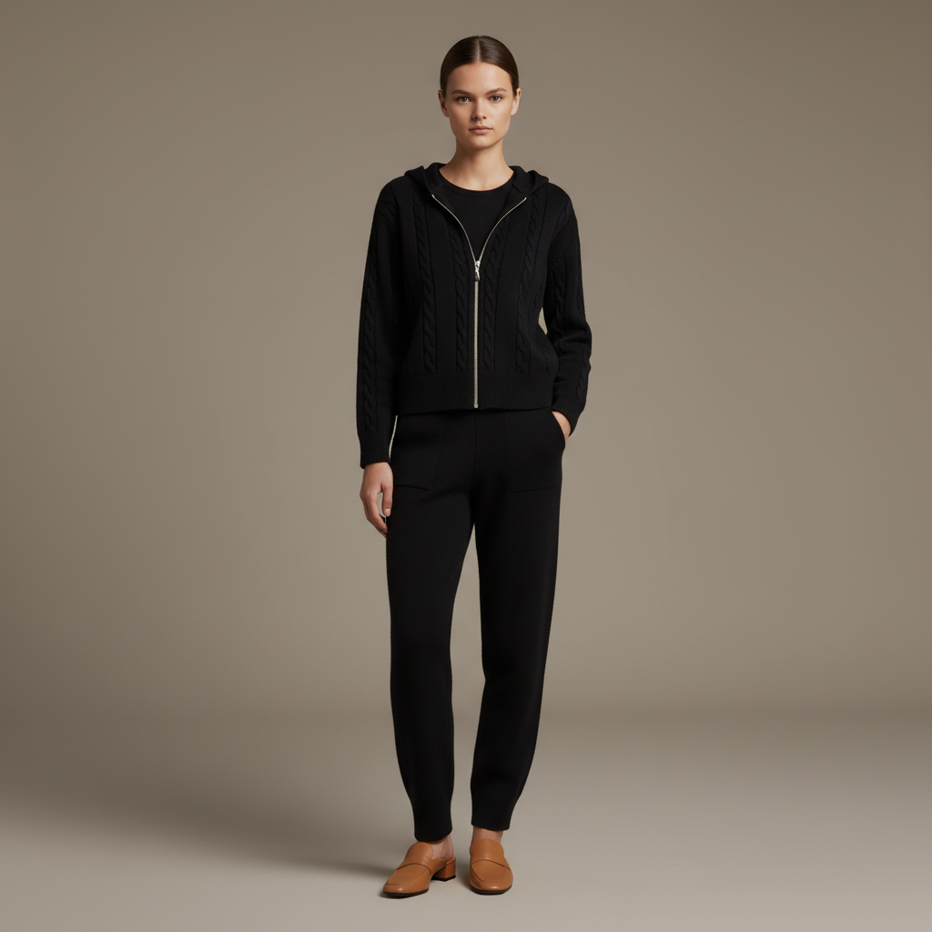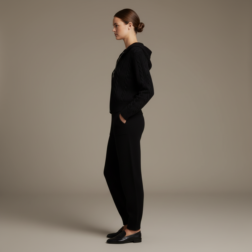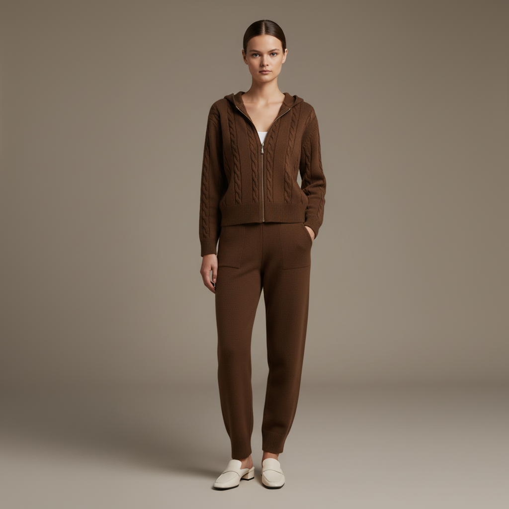 Combination of elegance and comfort with a sophisticated jacquard pattern and a relaxed fit. This matching set is perfect for those who want to make a statement while enjoying the ease of coordinated style, ideal for casual outings or dressed-up occasions.