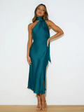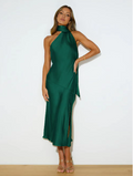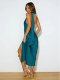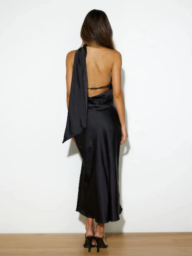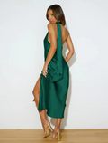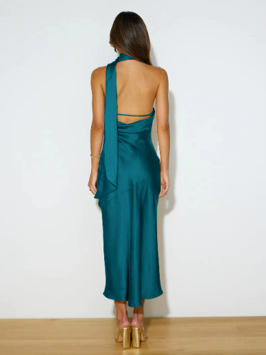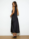 A unique blend of fluidity and structure — this midi dress features a dramatic scarf neckline that effortlessly elevates any occasion.