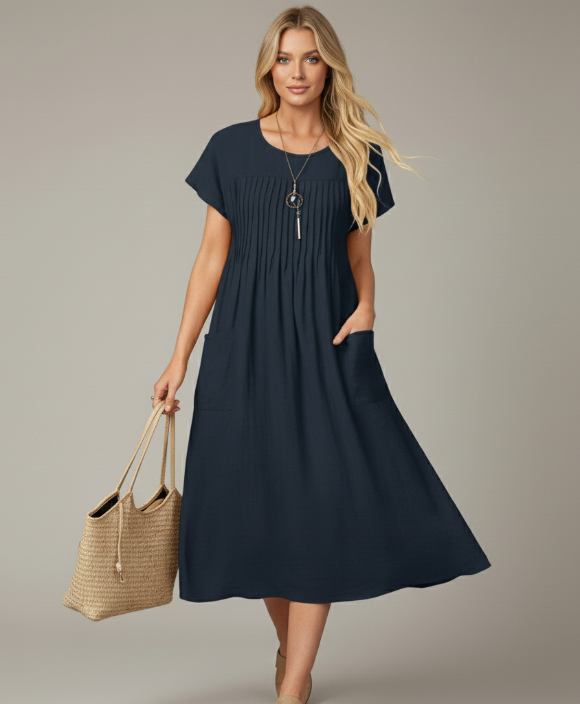 Your go-to choice for effortless elegance and comfort. Crafted from lightweight linen, this dress is perfect for warm weather, offering a relaxed fit that allows you to move freely while staying stylish.