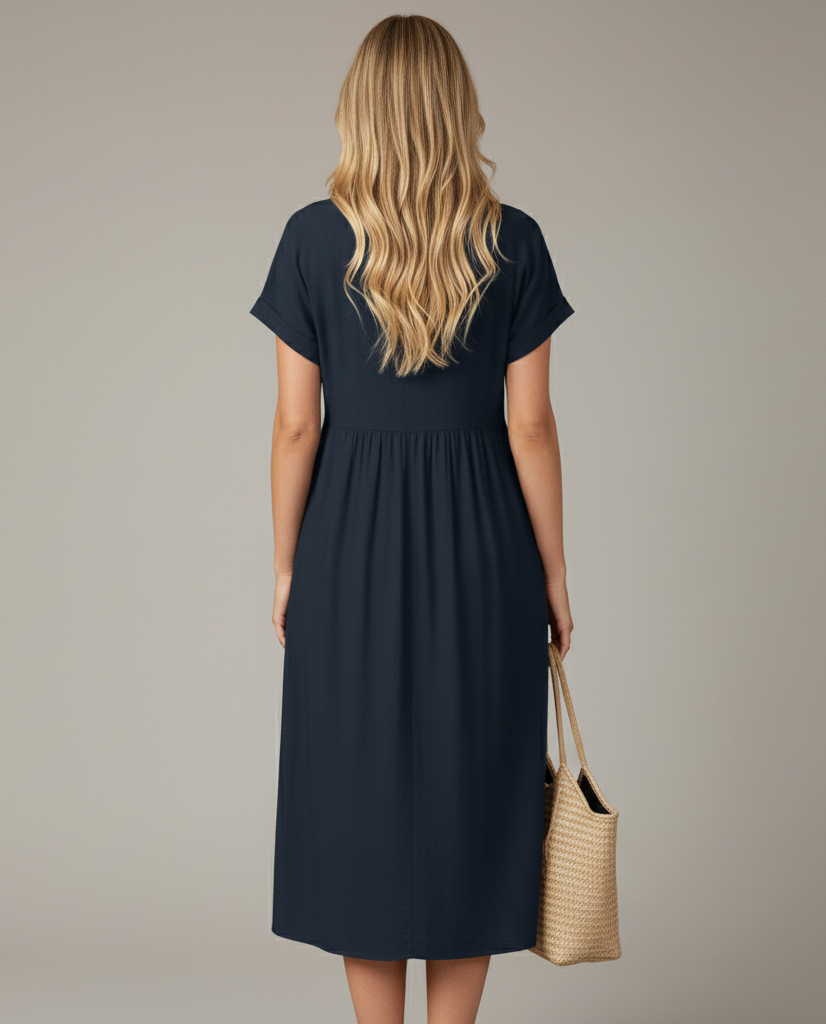 Effortless Chic: With its minimalist design and clean lines, this dress embodies a laid-back yet sophisticated vibe, perfect for those who appreciate timeless style.