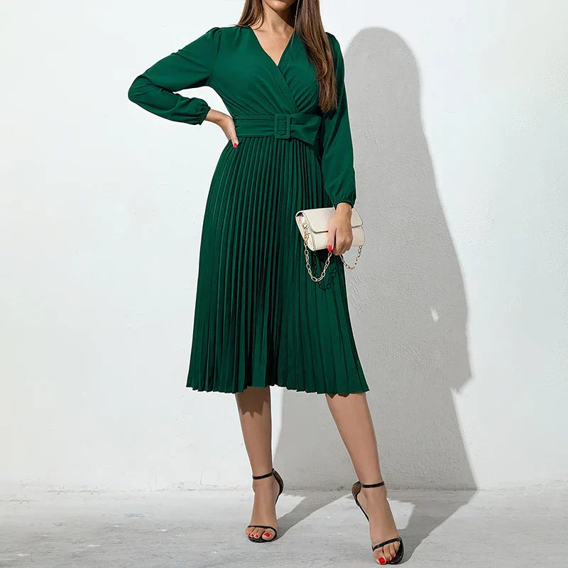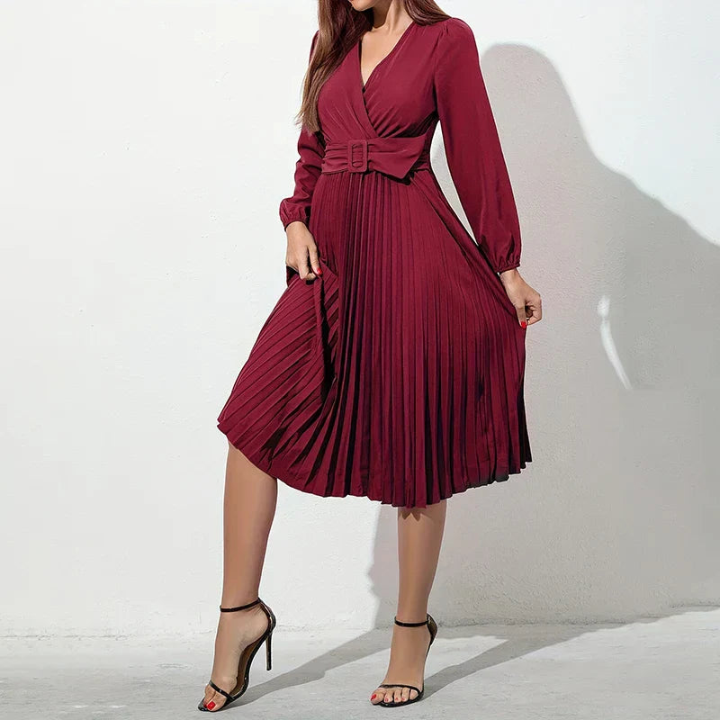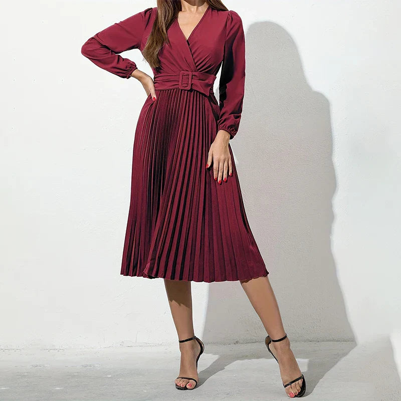 This is our Belted Pleated Long Sleeve Midi