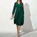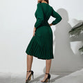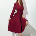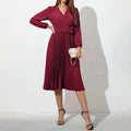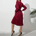 Belted Pleated Long Sleeve Midi