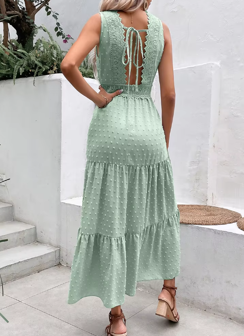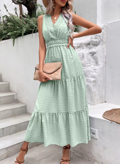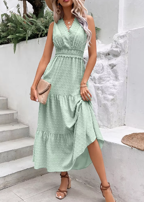 A perfect blend of sophistication and comfort for all your summer events. Whether you're attending a garden party, brunch, or a casual day out, this dress offers effortless elegance with a refreshing, breezy style.