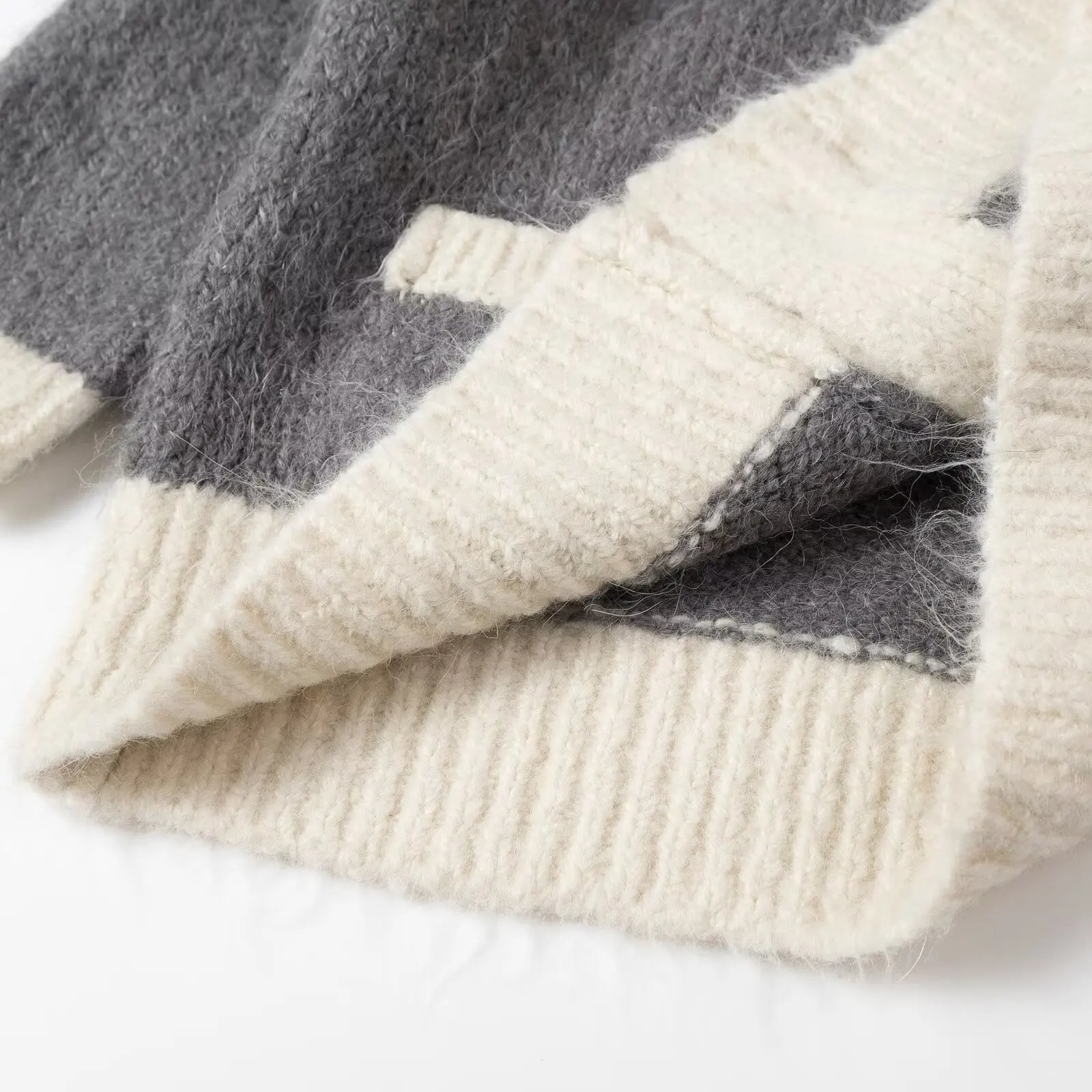 Unique Patchwork Design: The Blaire cardigan jacket showcases an eye-catching patchwork design, combining different knitted patterns for a distinctive and eclectic look.