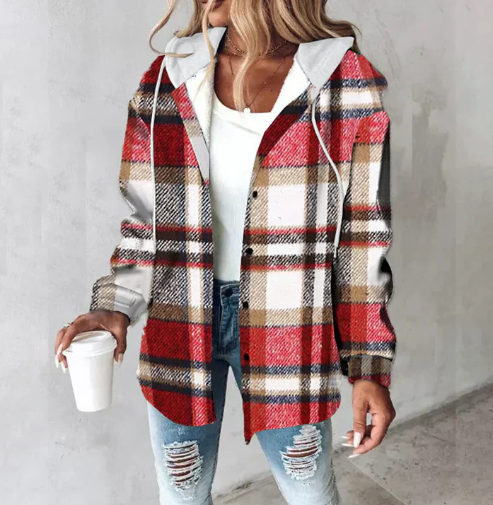 The Bria Plaid Hooded Jacket brings a modern twist to classic plaid, offering a blend of warmth and casual style. Crafted from high-quality polyester, this jacket features a cozy hood and a timeless plaid pattern, making it an ideal choice for layering in cooler weather. The fabric is soft and durable, providing comfort without sacrificing style.