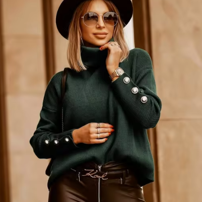 This is our Button Detail Soft Knit Turtleneck