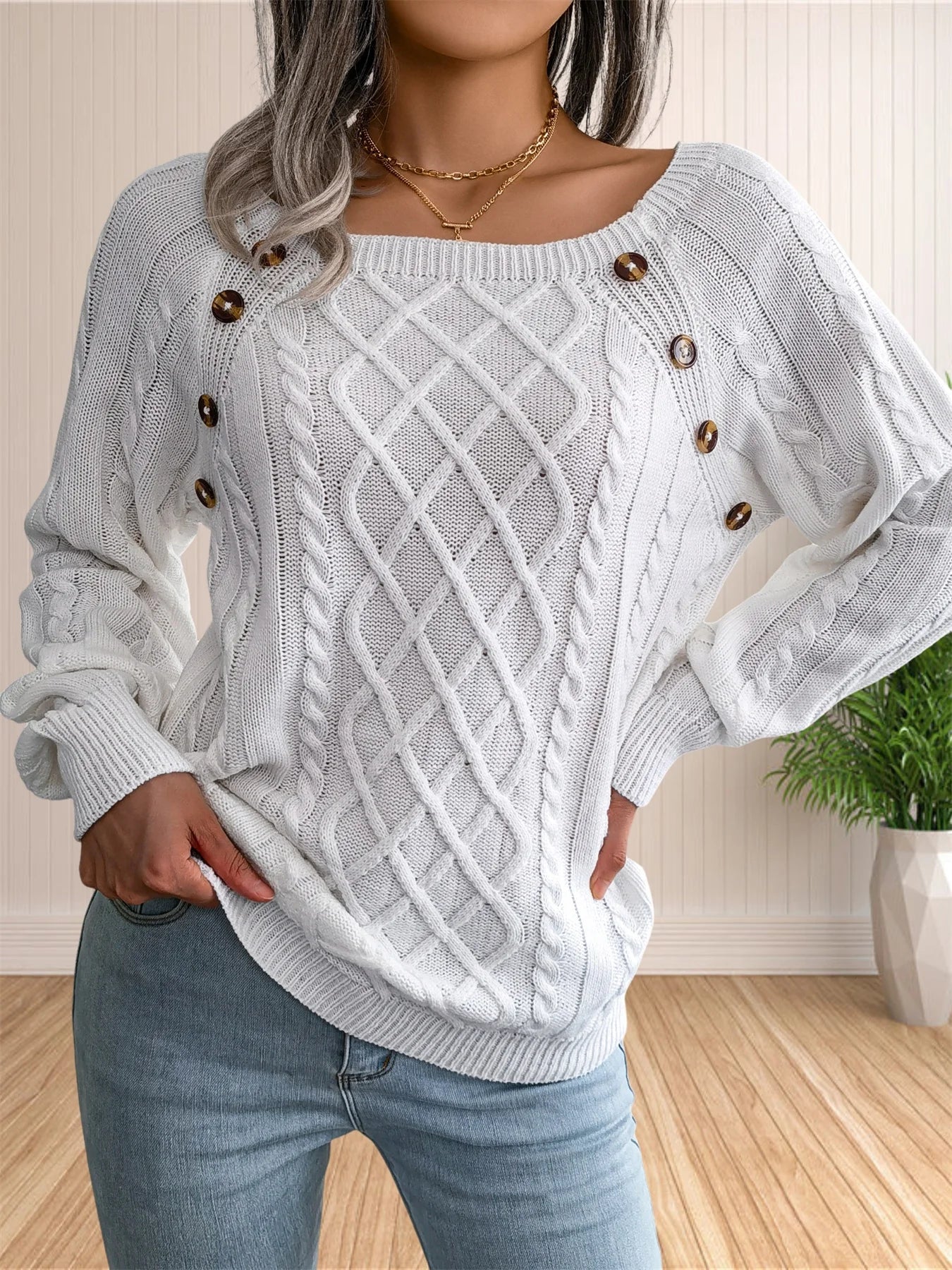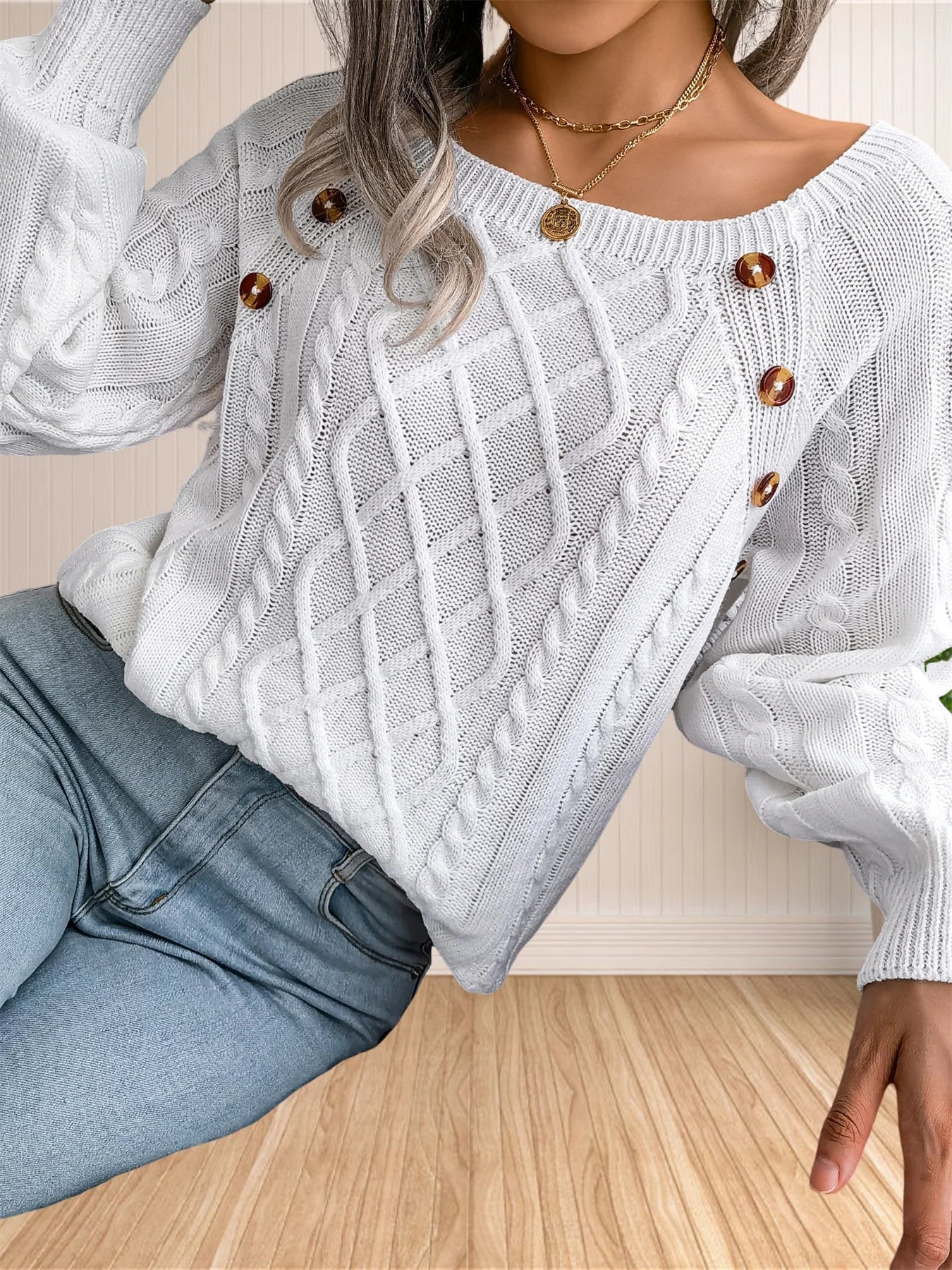 Classic with a twist — this cable knit sweater adds texture, charm, and a cozy-cool vibe to any outfit.