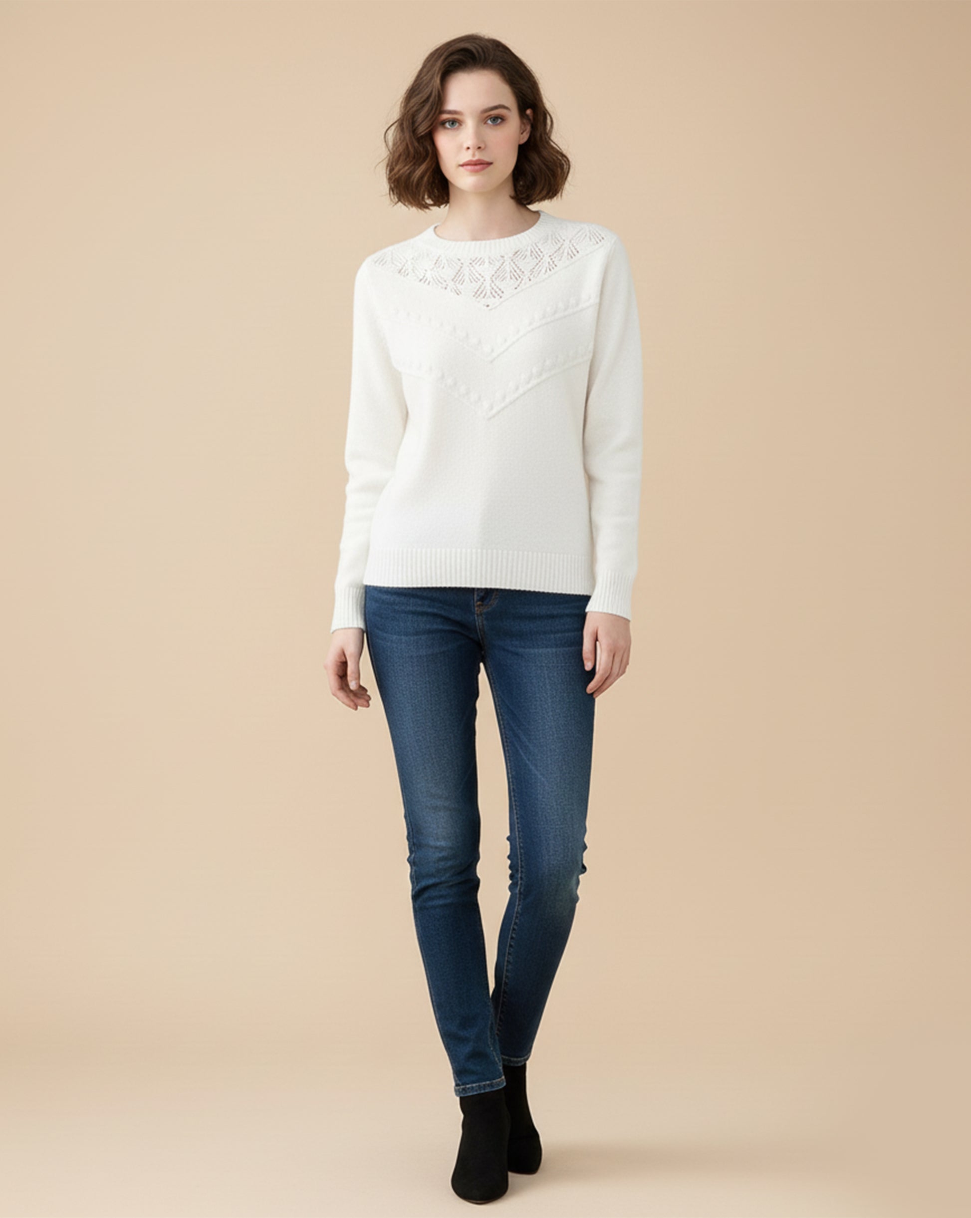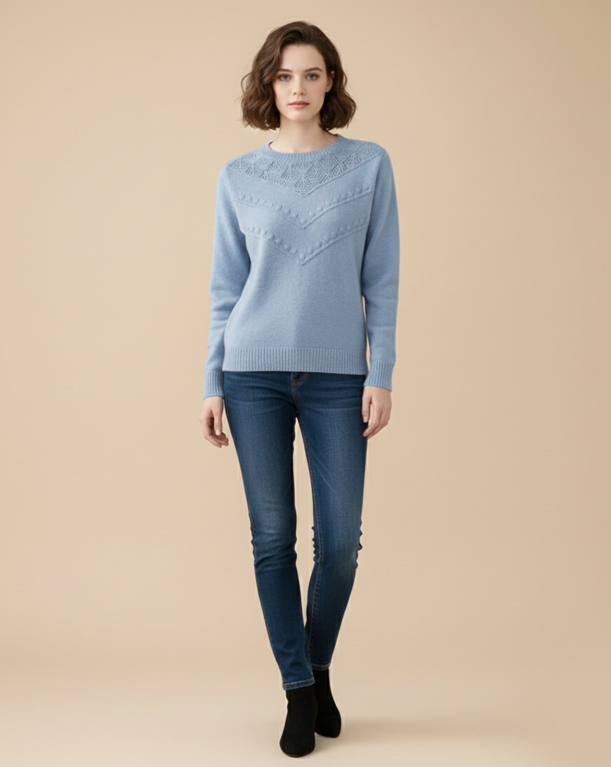 Sophisticated Knit: The Candace Pullover features an intricate knitted pattern that enhances its classic appeal, adding a layer of visual interest to your outfit.