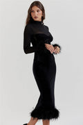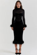 Eye-Catching Design: The Carolina Party Dress combines sheer mesh with delicate feather accents, creating a bold and glamorous look that is sure to turn heads.