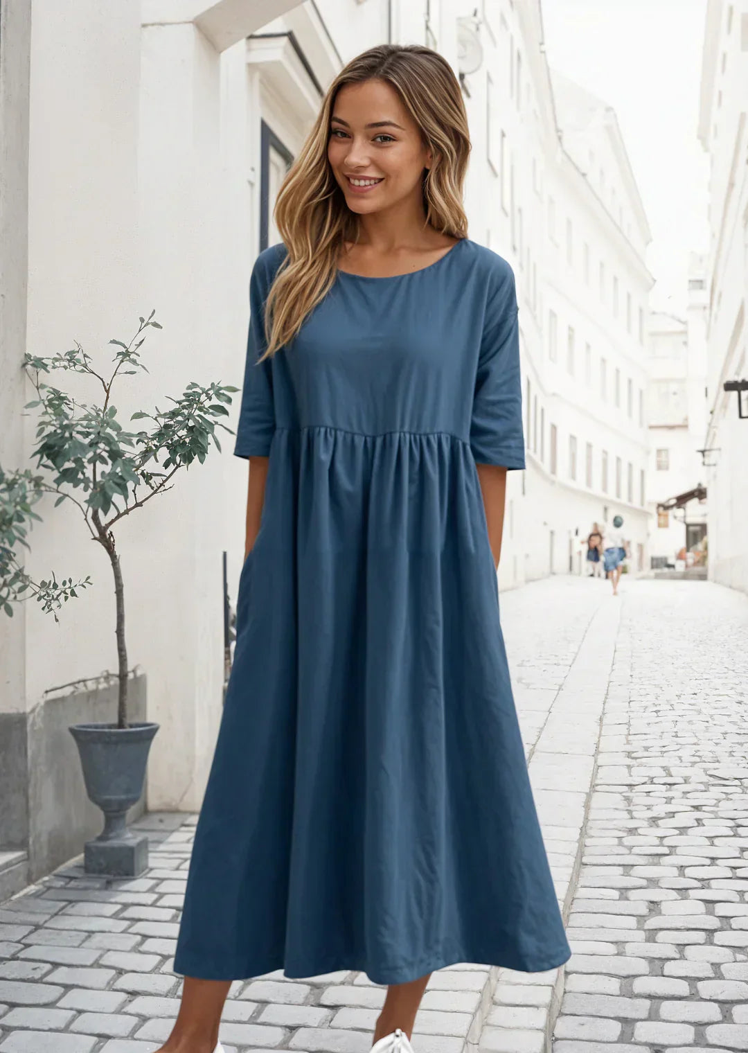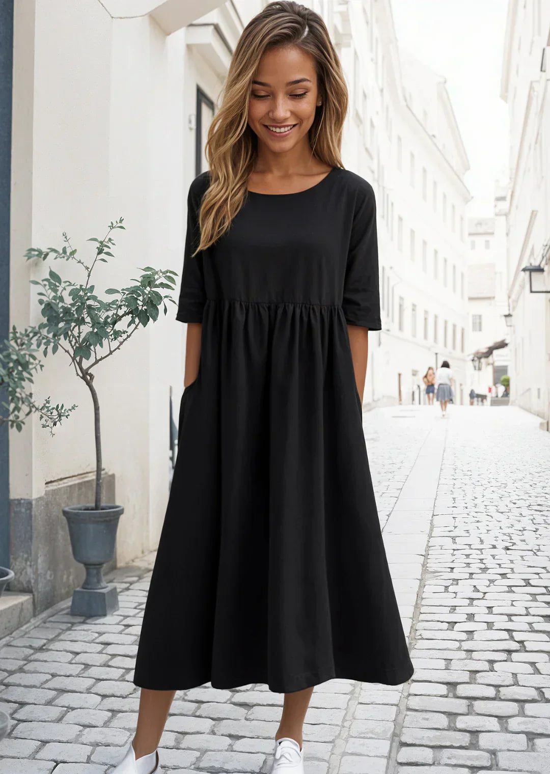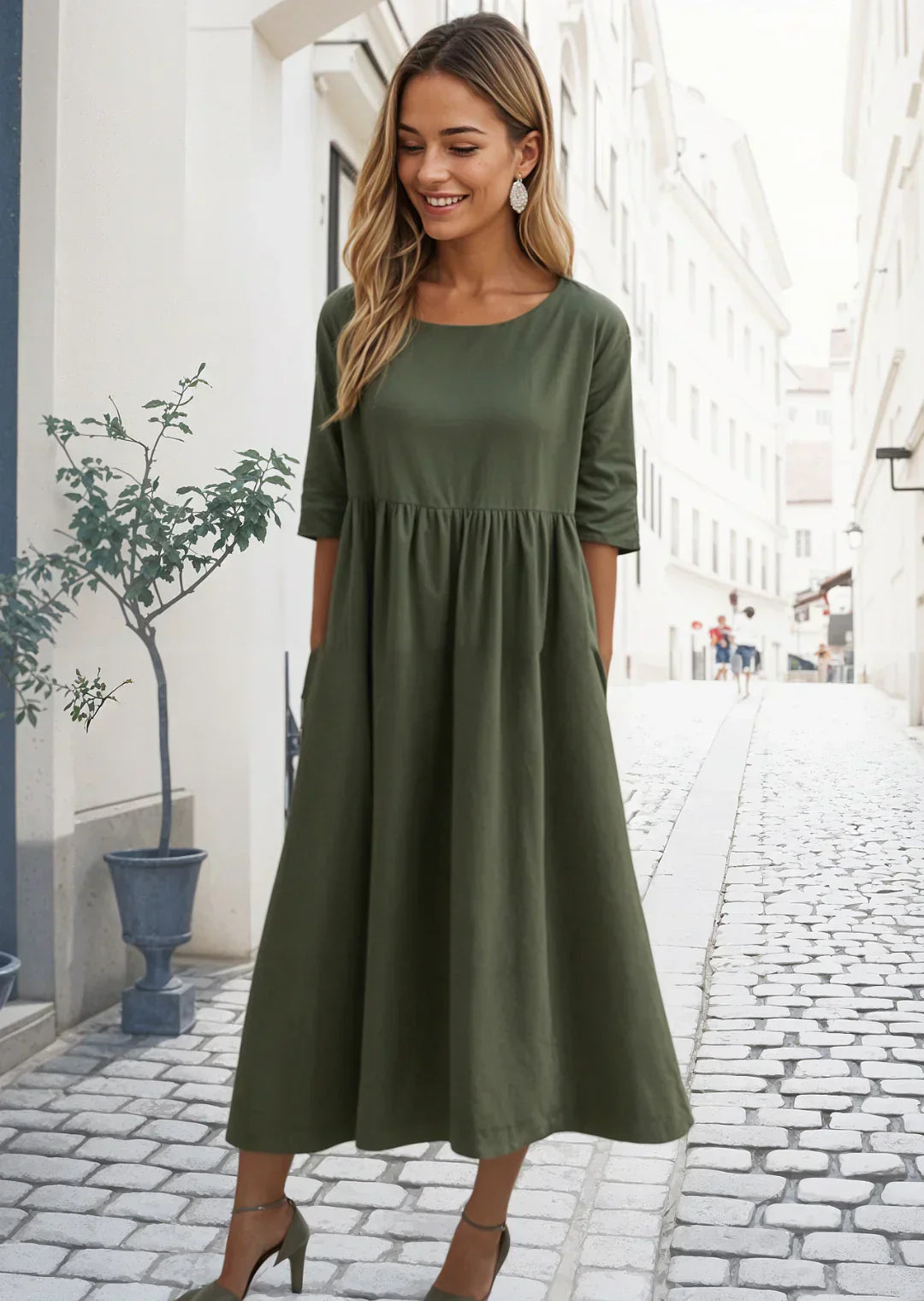 Elevate your everyday style with the Chesca Midi Dress, the ultimate choice for chic comfort and timeless elegance.