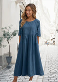 Chic Half Sleeves: The stylish half sleeves add a touch of sophistication and allow for ease of movement, making this dress perfect for transitional weather.