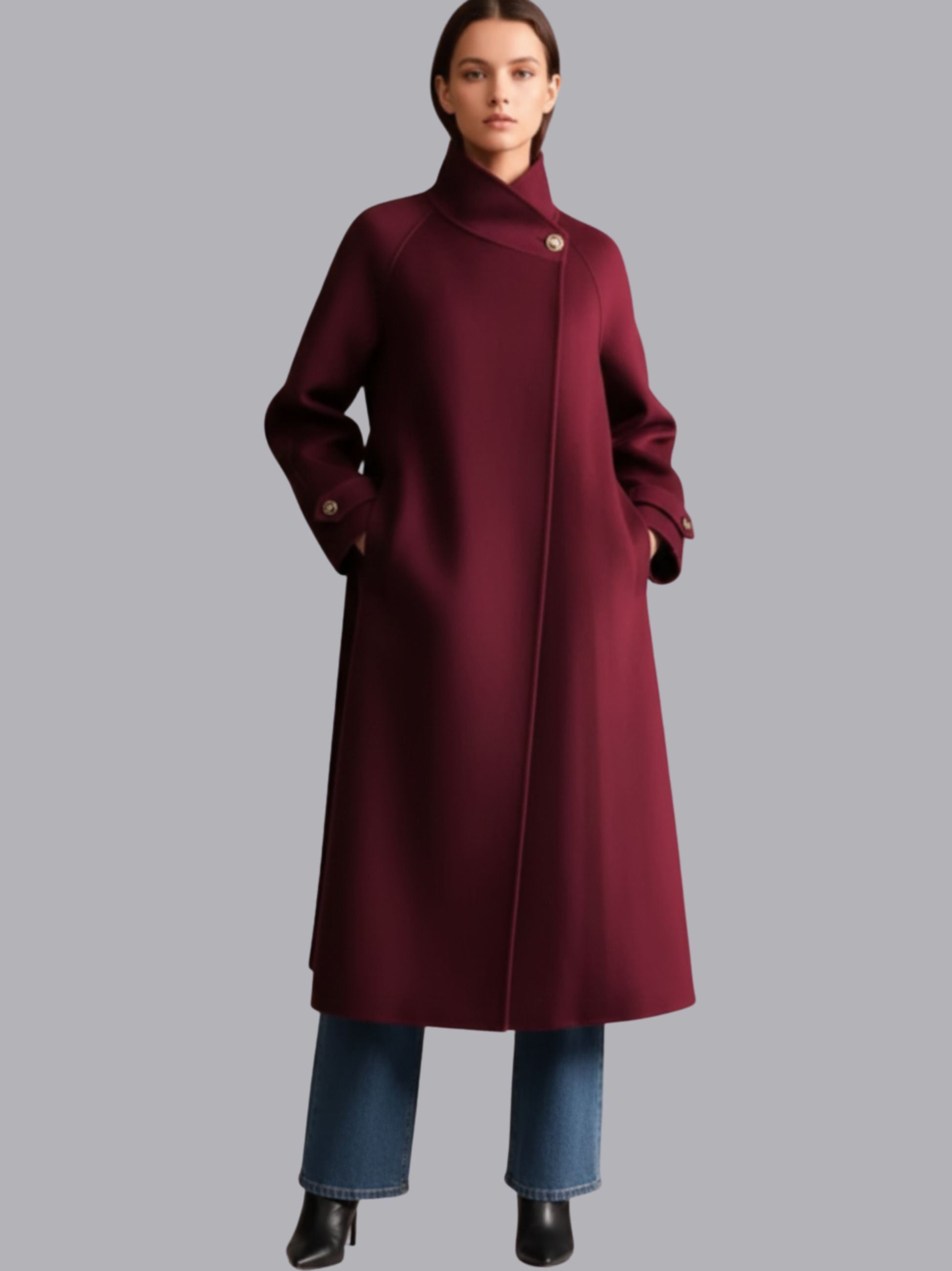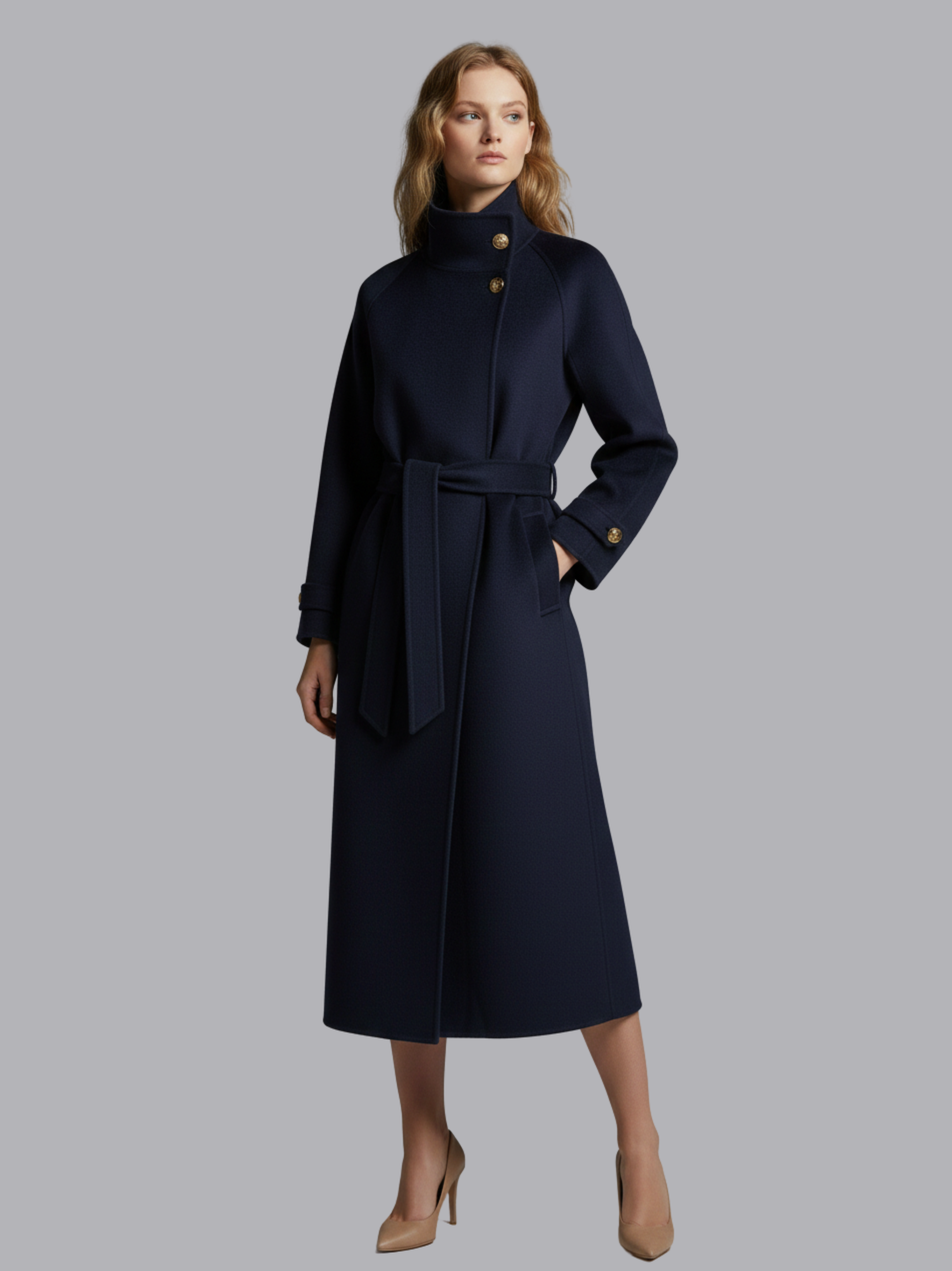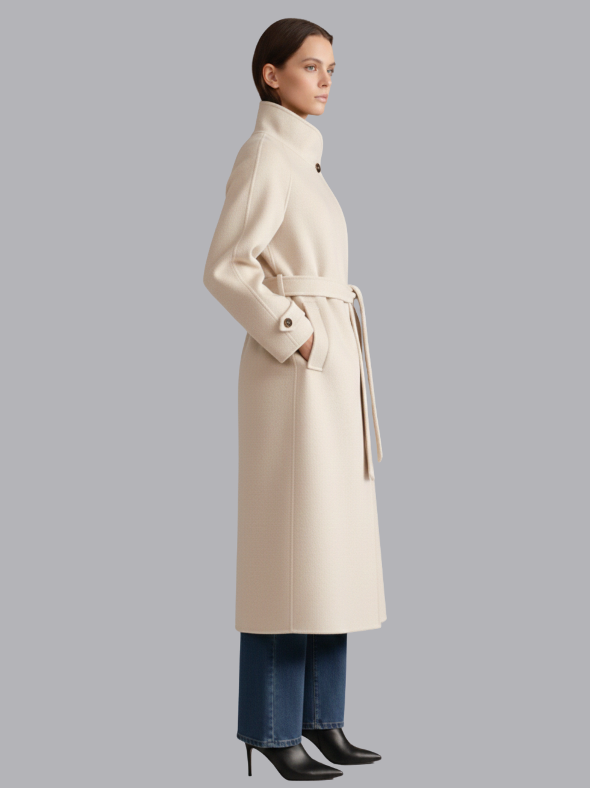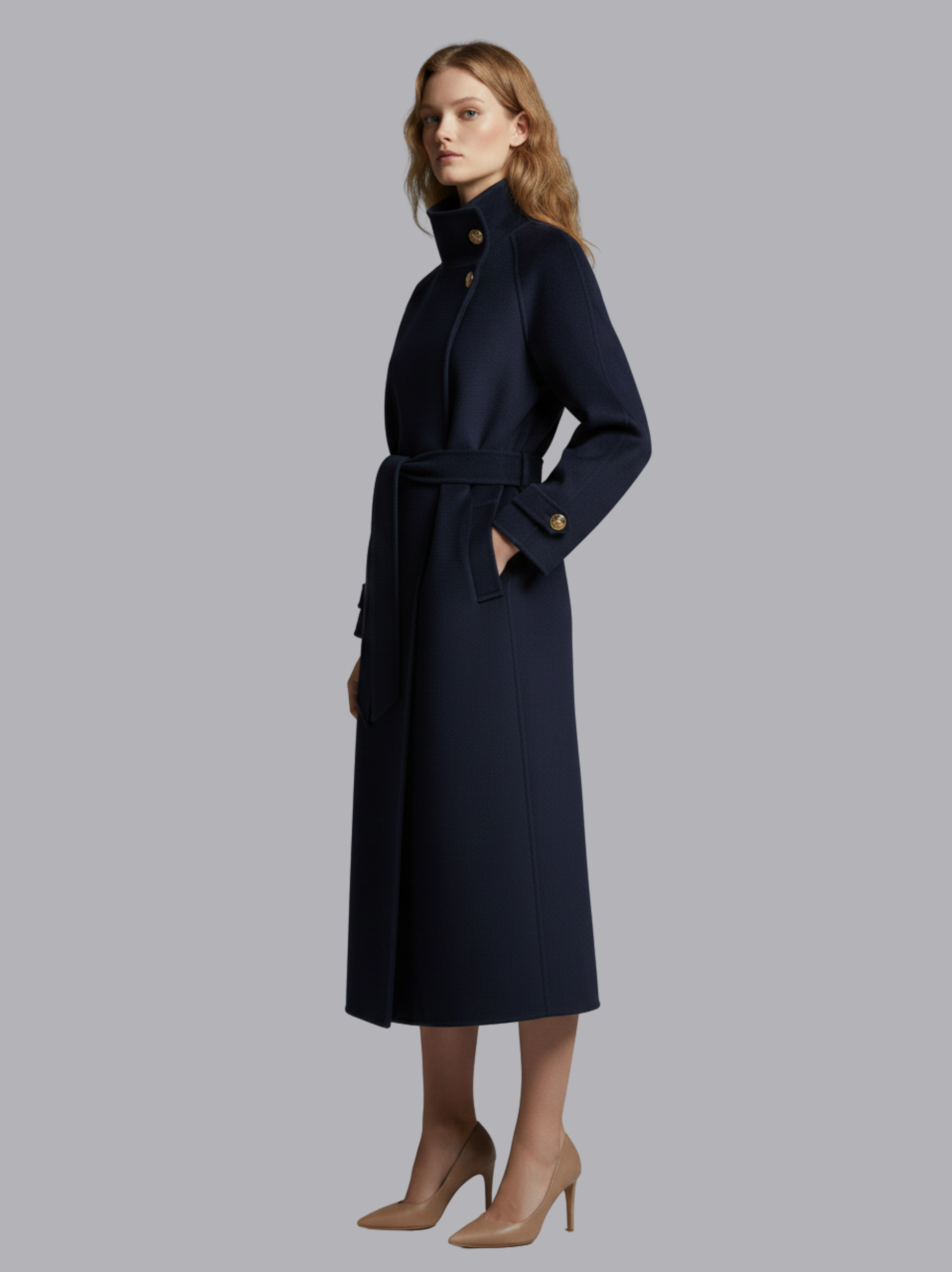 Stand-Up Collar: The elegant stand-up collar adds a refined touch while providing extra protection from the cold.