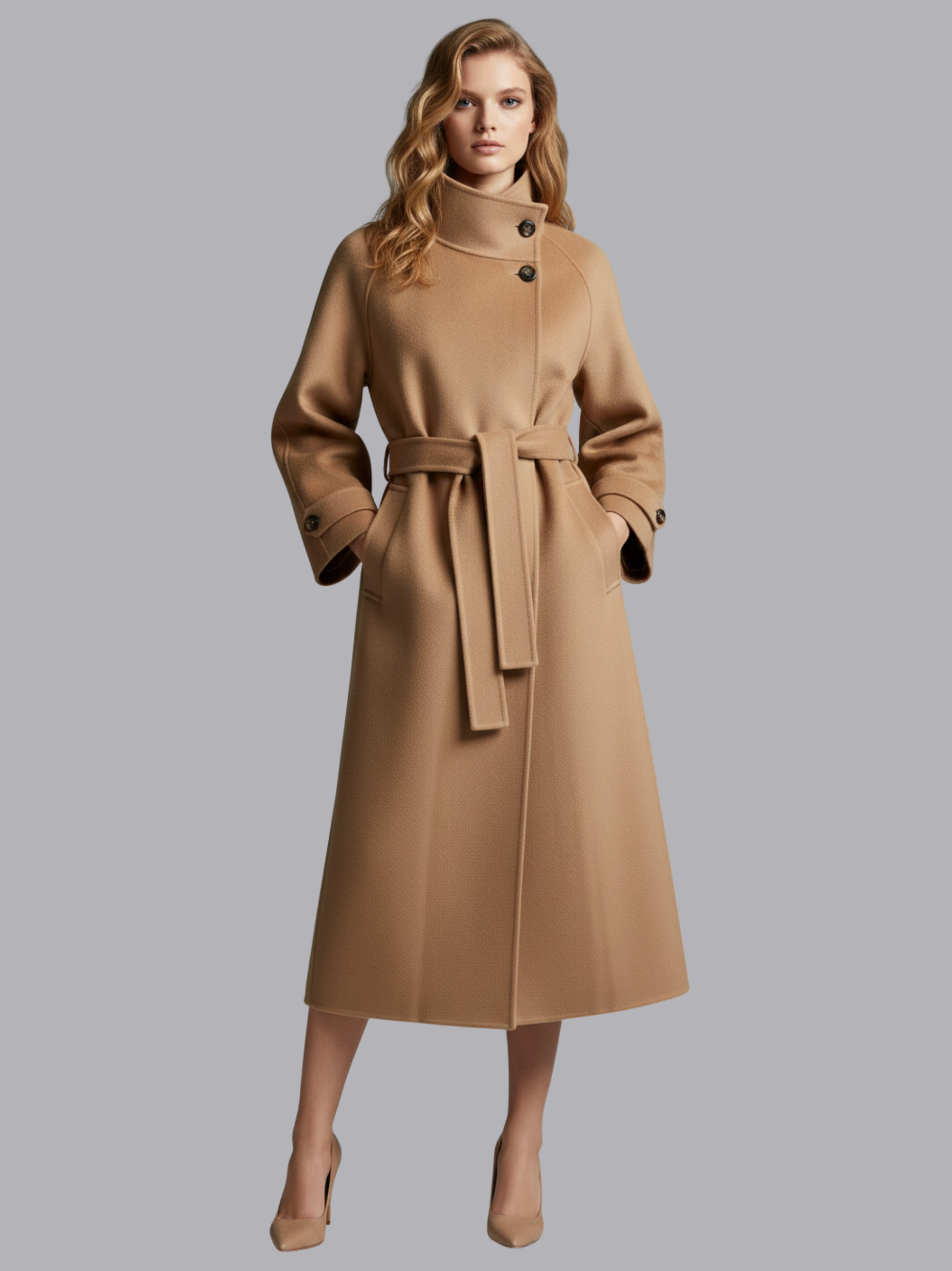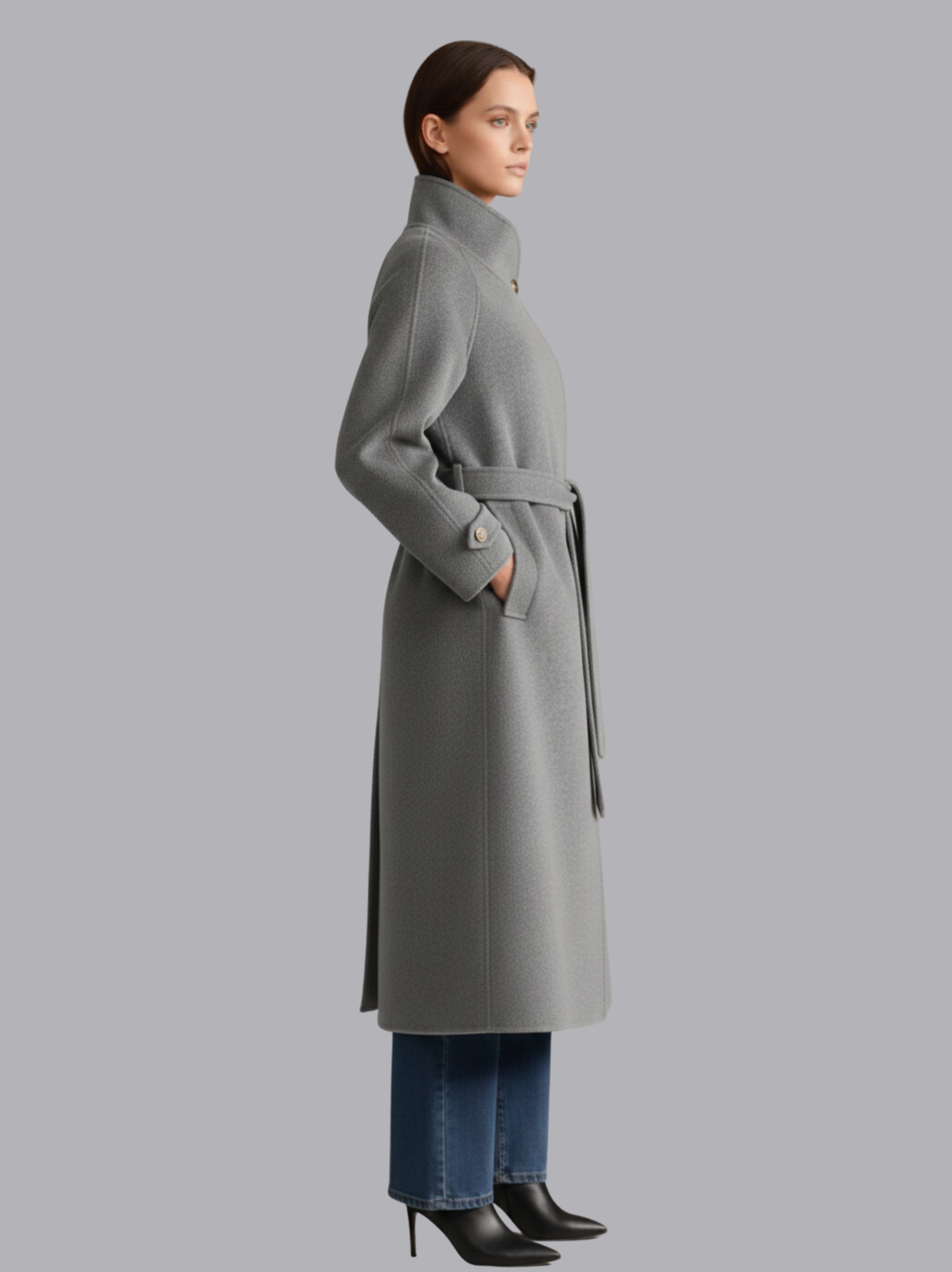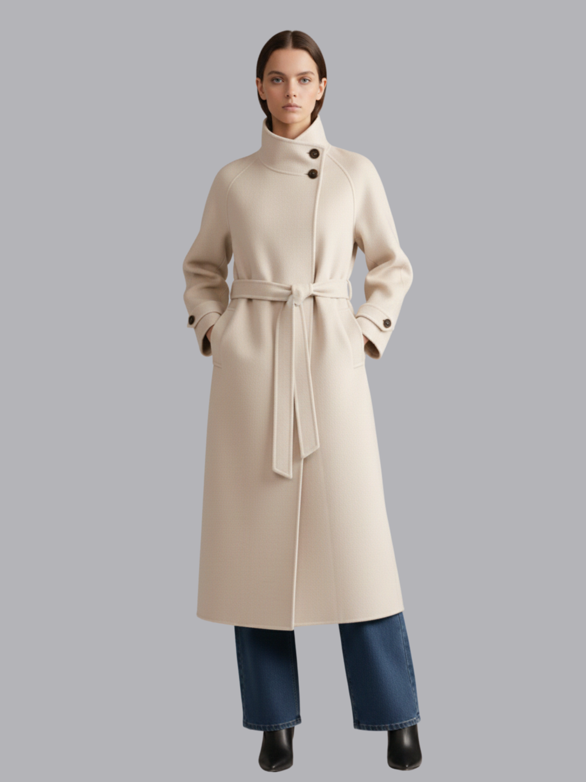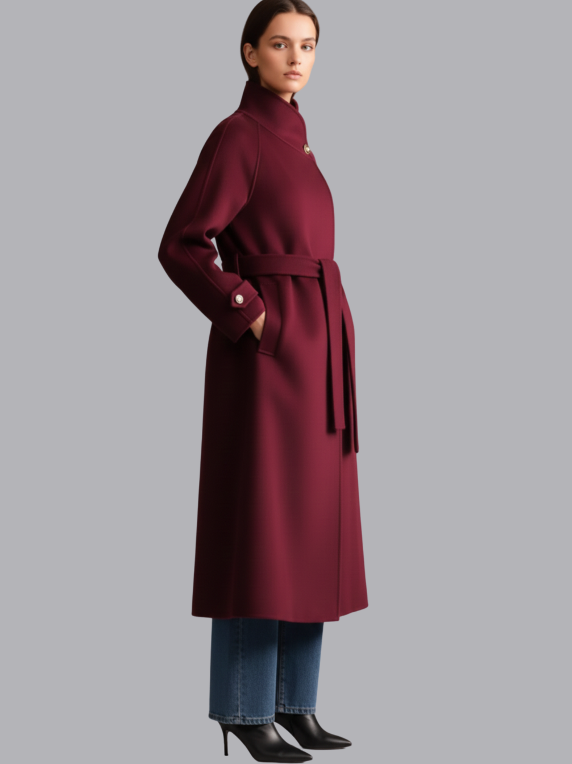 Stand-Up Collar: The elegant stand-up collar adds a refined touch while providing extra protection from the cold.