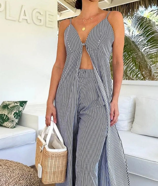 This is our Classic Striped Top and Wide-Leg Pants Set