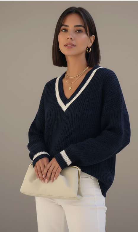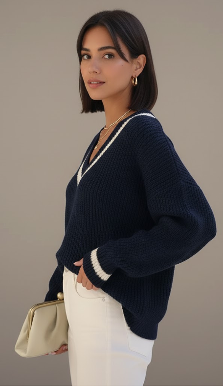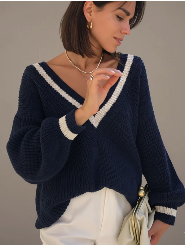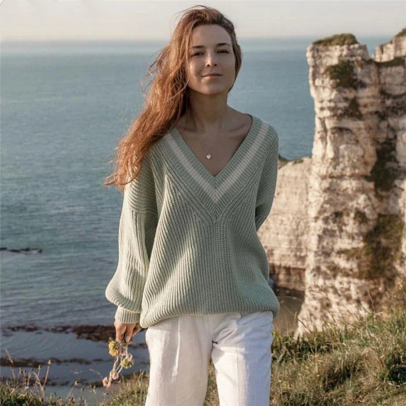 A timeless staple redefined in softness — this V-neck sweater slips seamlessly into any season and setting.