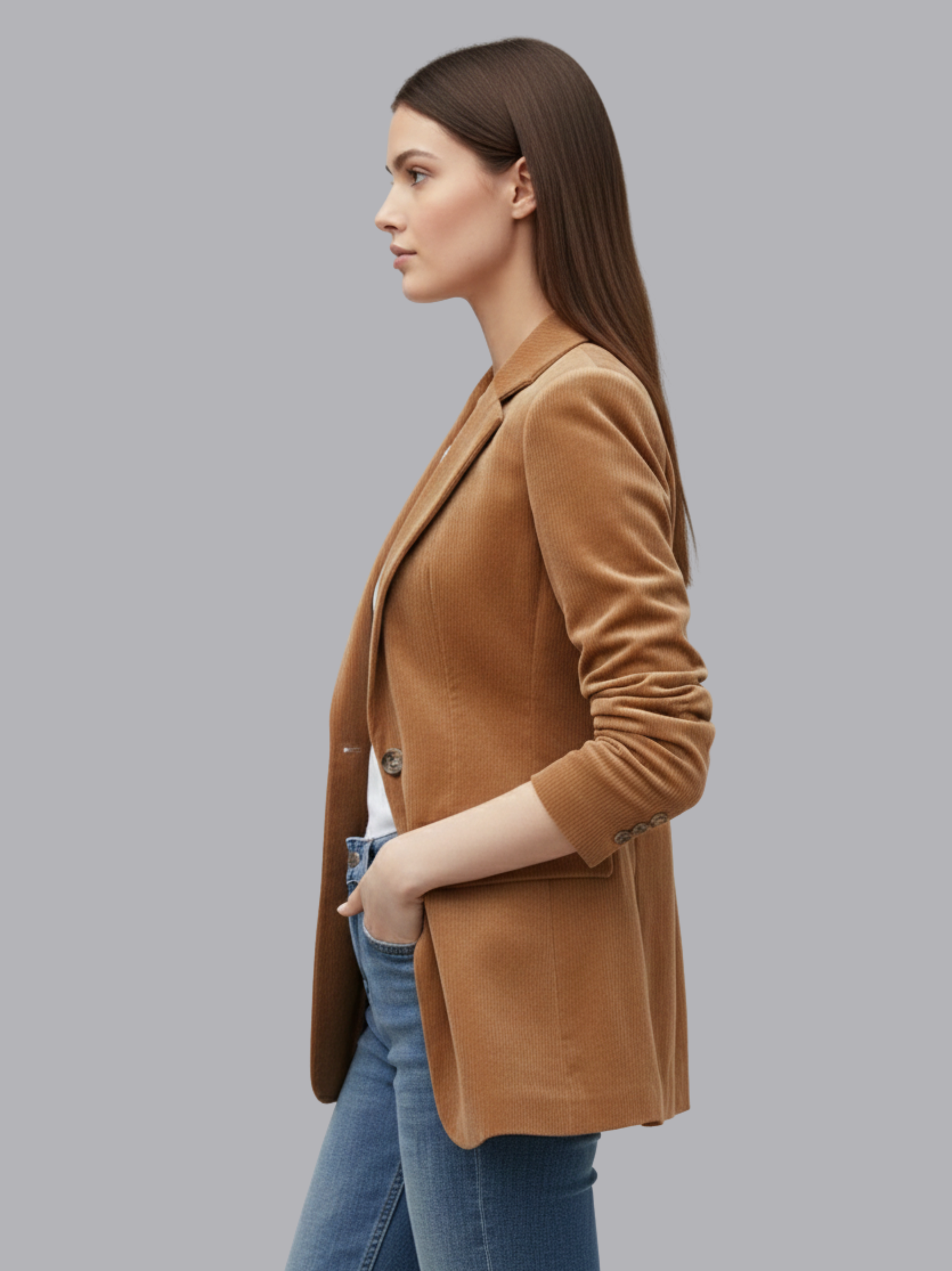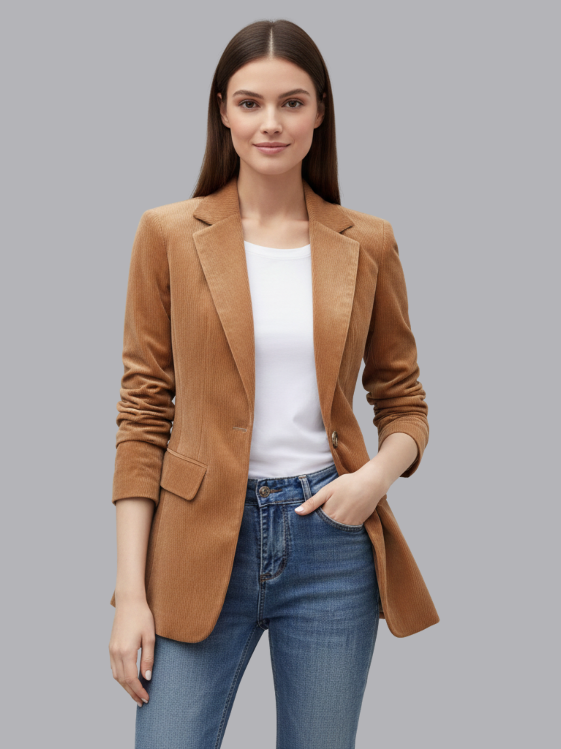 Tailored Fit: The Cleo Corduroy Blazer is designed to provide a flattering, tailored fit that enhances your silhouette for a polished appearance.
