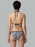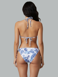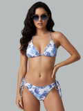 This is our Colorful Print Triangle Lace Up Bikini Set
