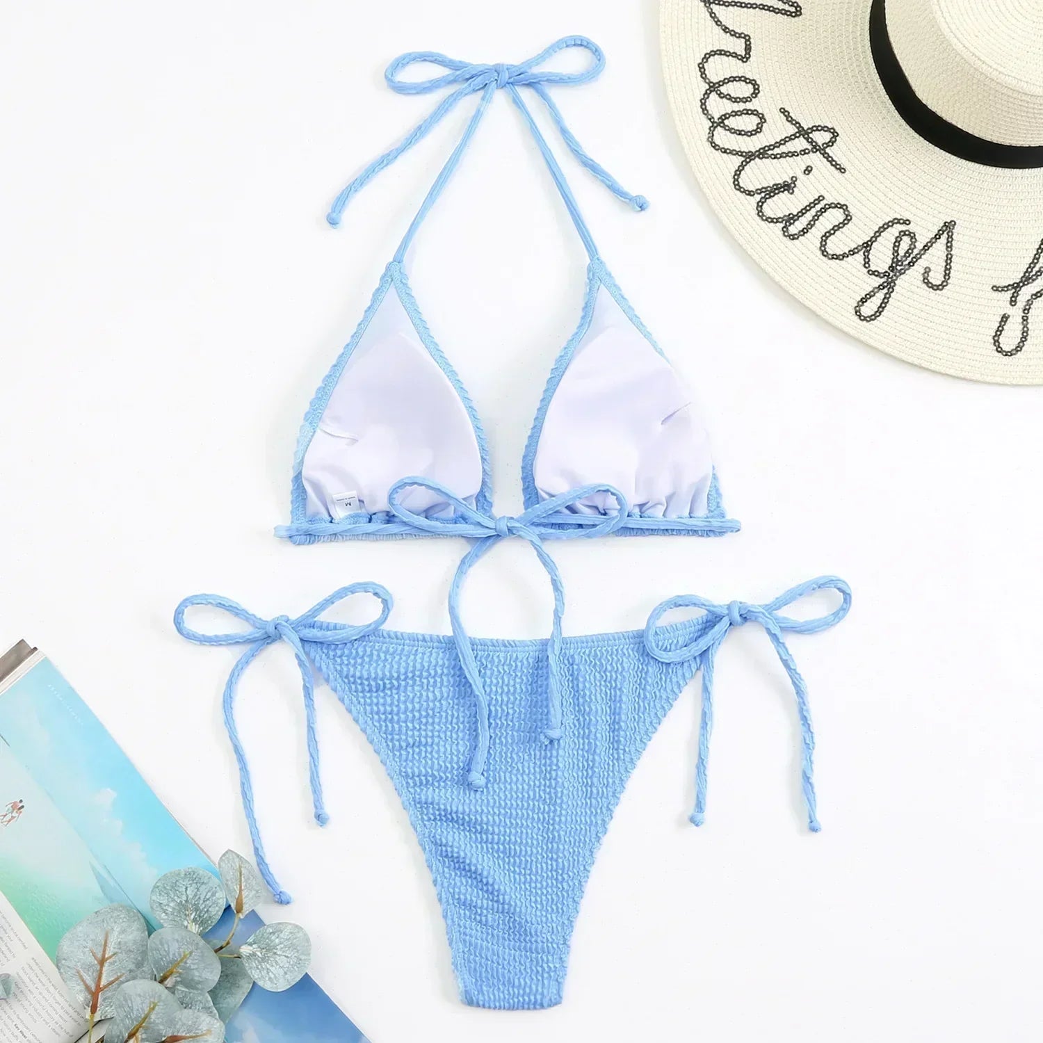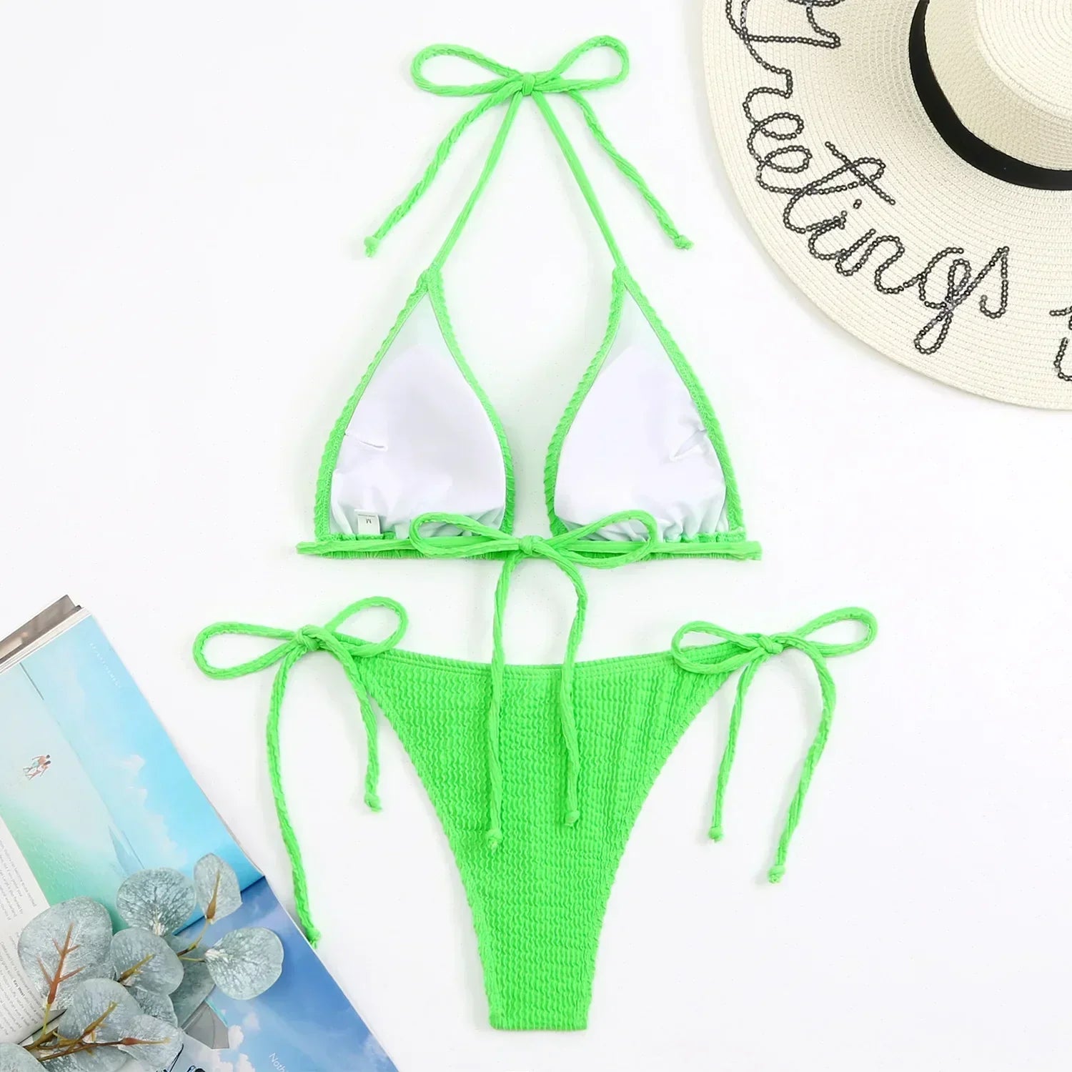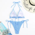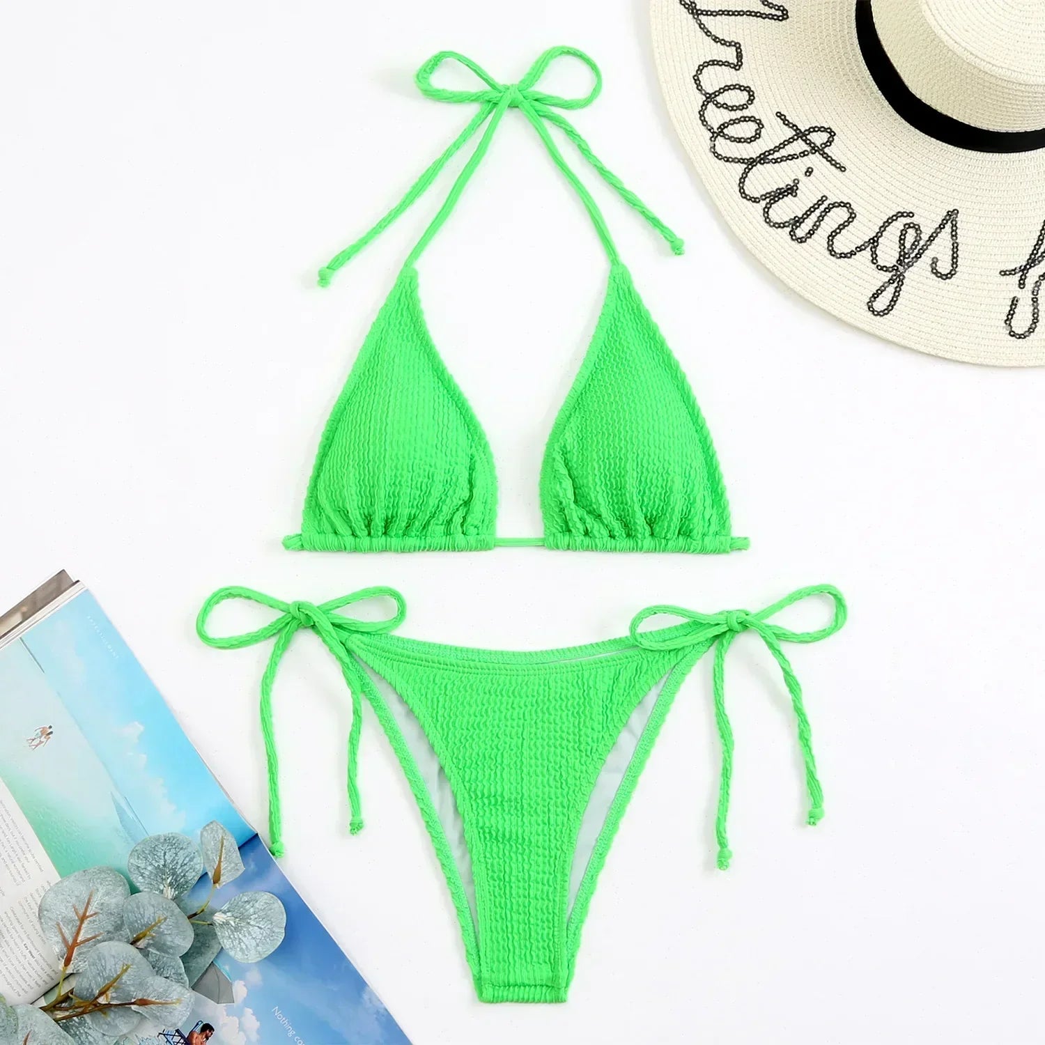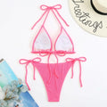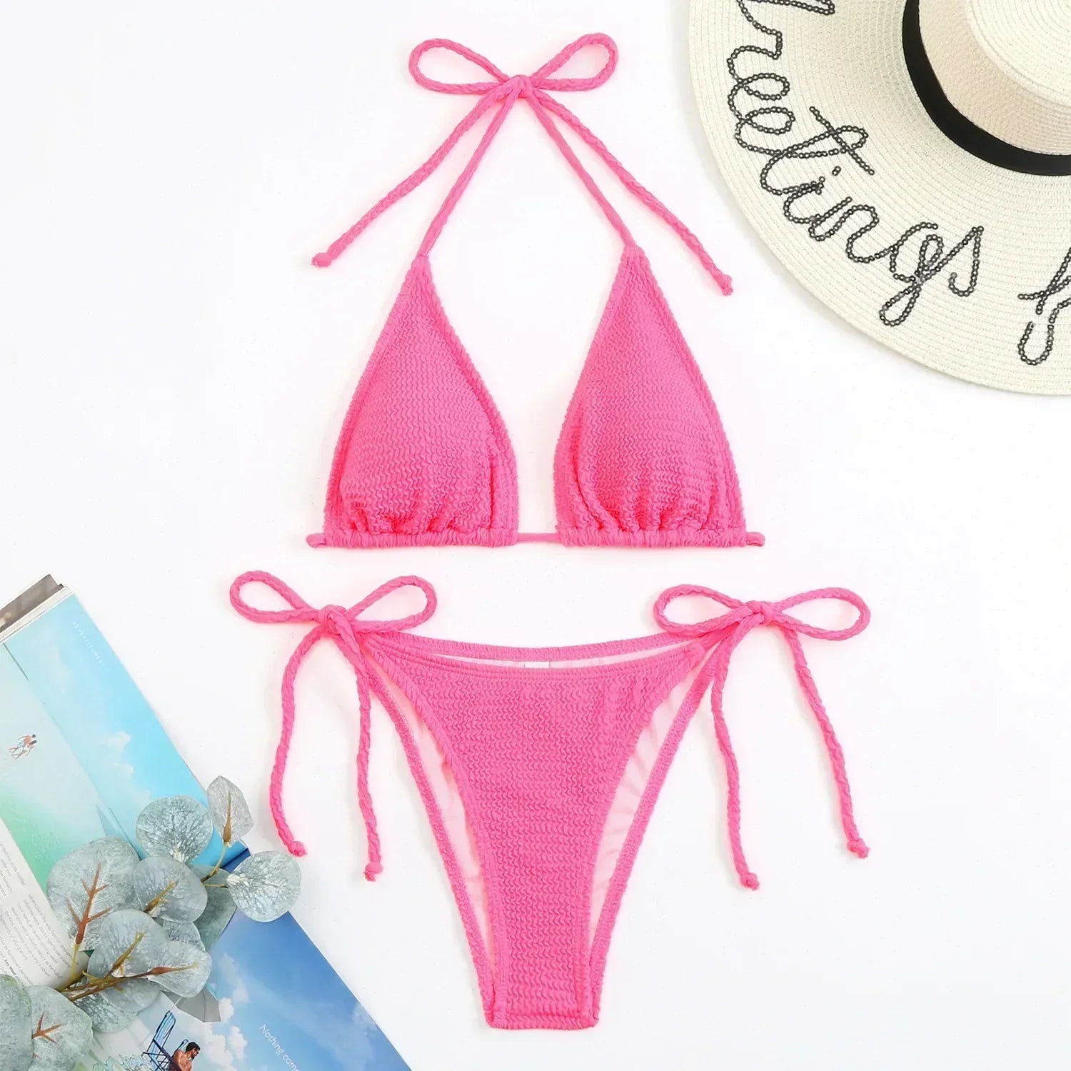 Make a splash this summer with our Colorful Triangle Lace-Up Bikini Set. Whether you're lounging in the sun or playing beach volleyball, this bikini set is sure to turn heads and make you feel fabulous!