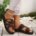Simple, supportive, and made for movement. The Criss Cross Slide Sandals are your go-to for busy days, beach strolls, or anything in between. With soft wide straps and a cushioned sole, they offer slip-on ease without sacrificing comfort.
