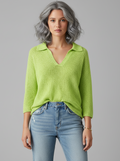 • Feminine V-neck with collar for an elevated, flattering touch