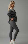 • Sleek fitted leggings create a flattering, elongated silhouette