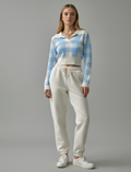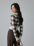 Cropped Plaid Pattern Knit Pullover
