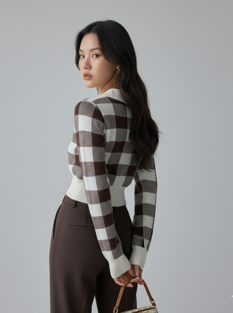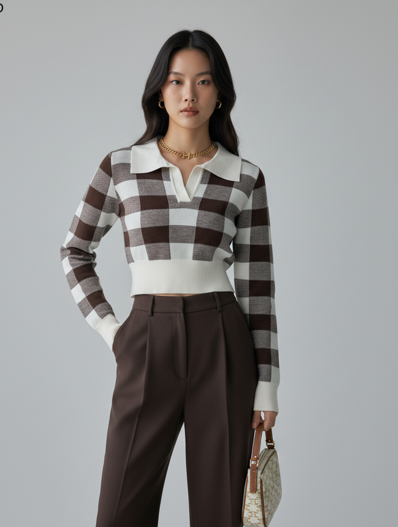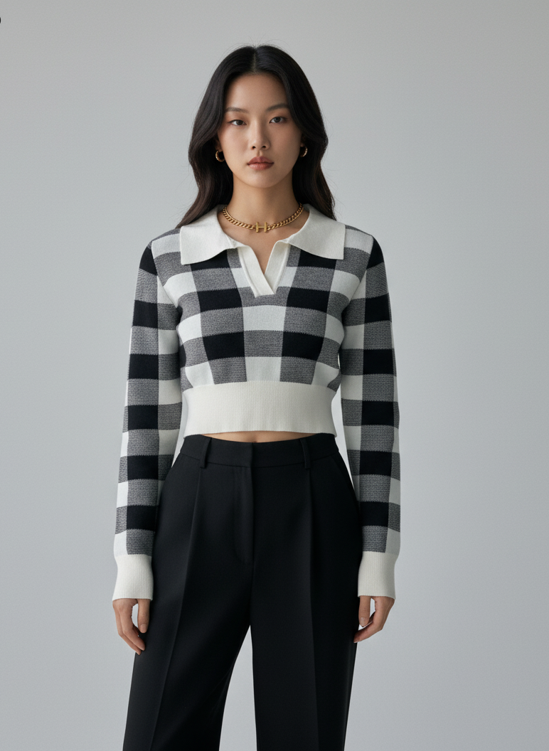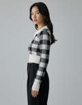 This is our Cropped Plaid Pattern Knit Pullover