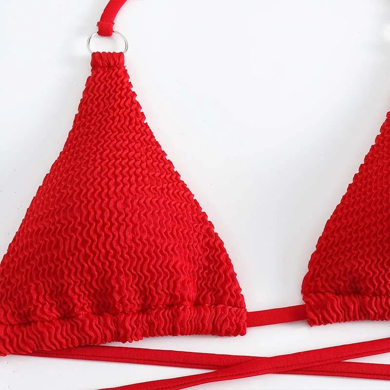 A stylish and chic swimwear option that is perfect for your next beach or pool day. This bikini features a unique cross lace-up design that adds a touch of flair to your swimwear look. Here are the key features and benefits of this bikini: