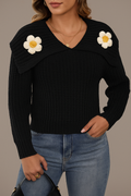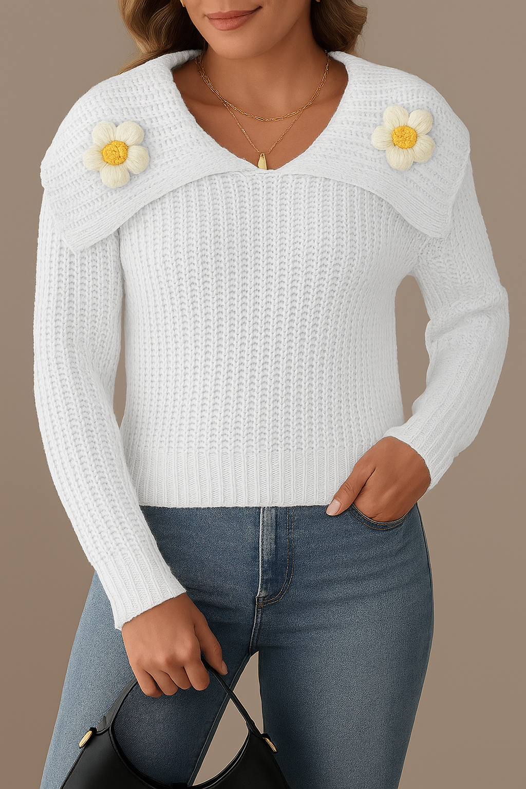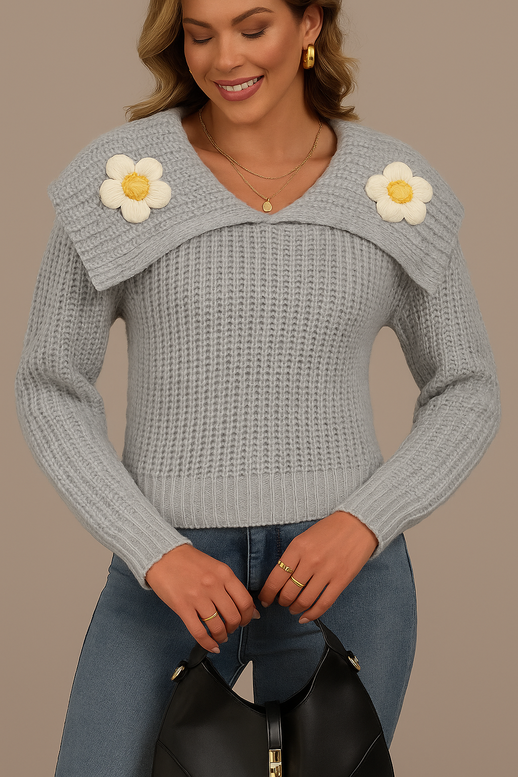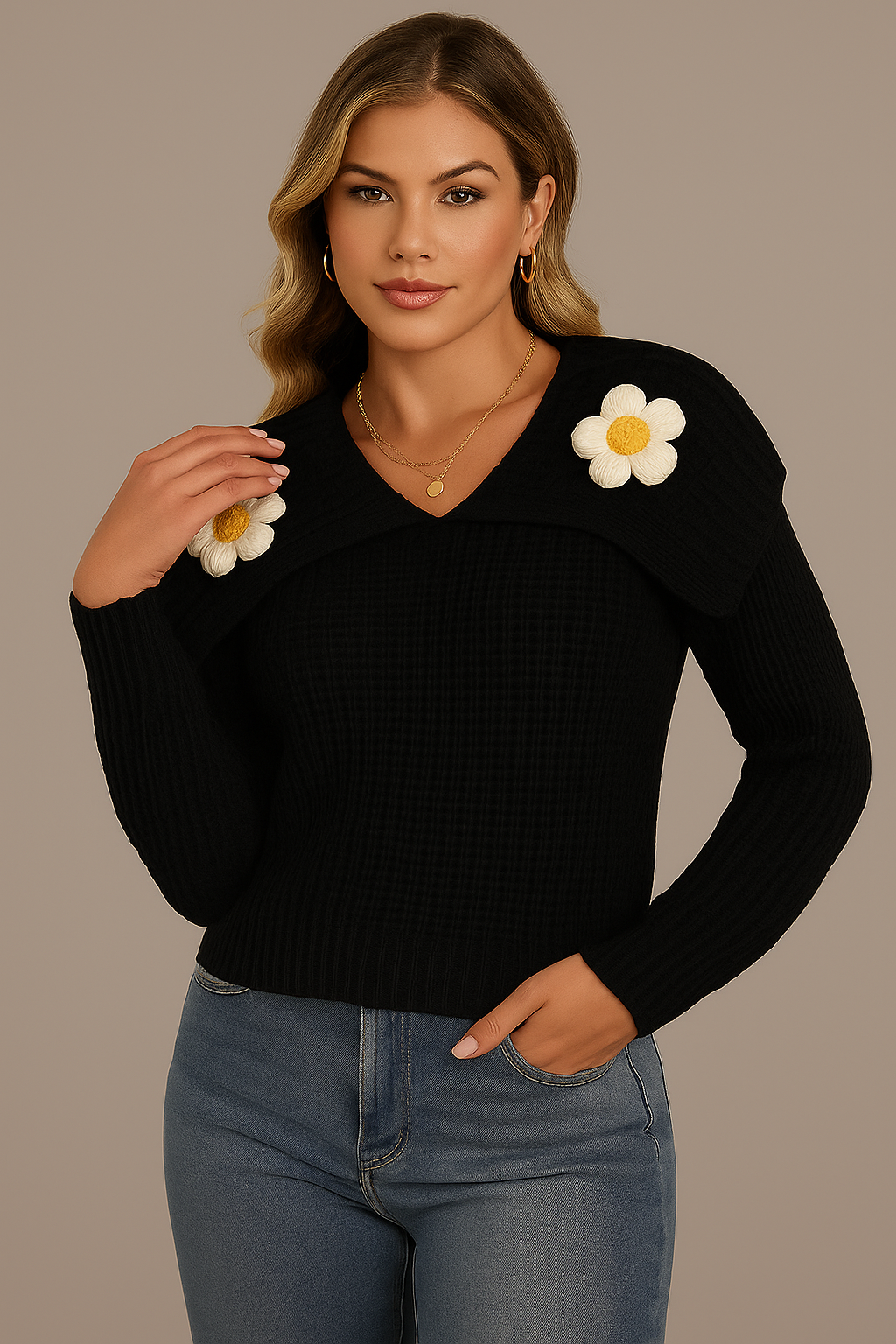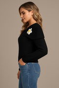 Sweet but far from basic — this floral-detailed knit brings a playful charm to your everyday layers.