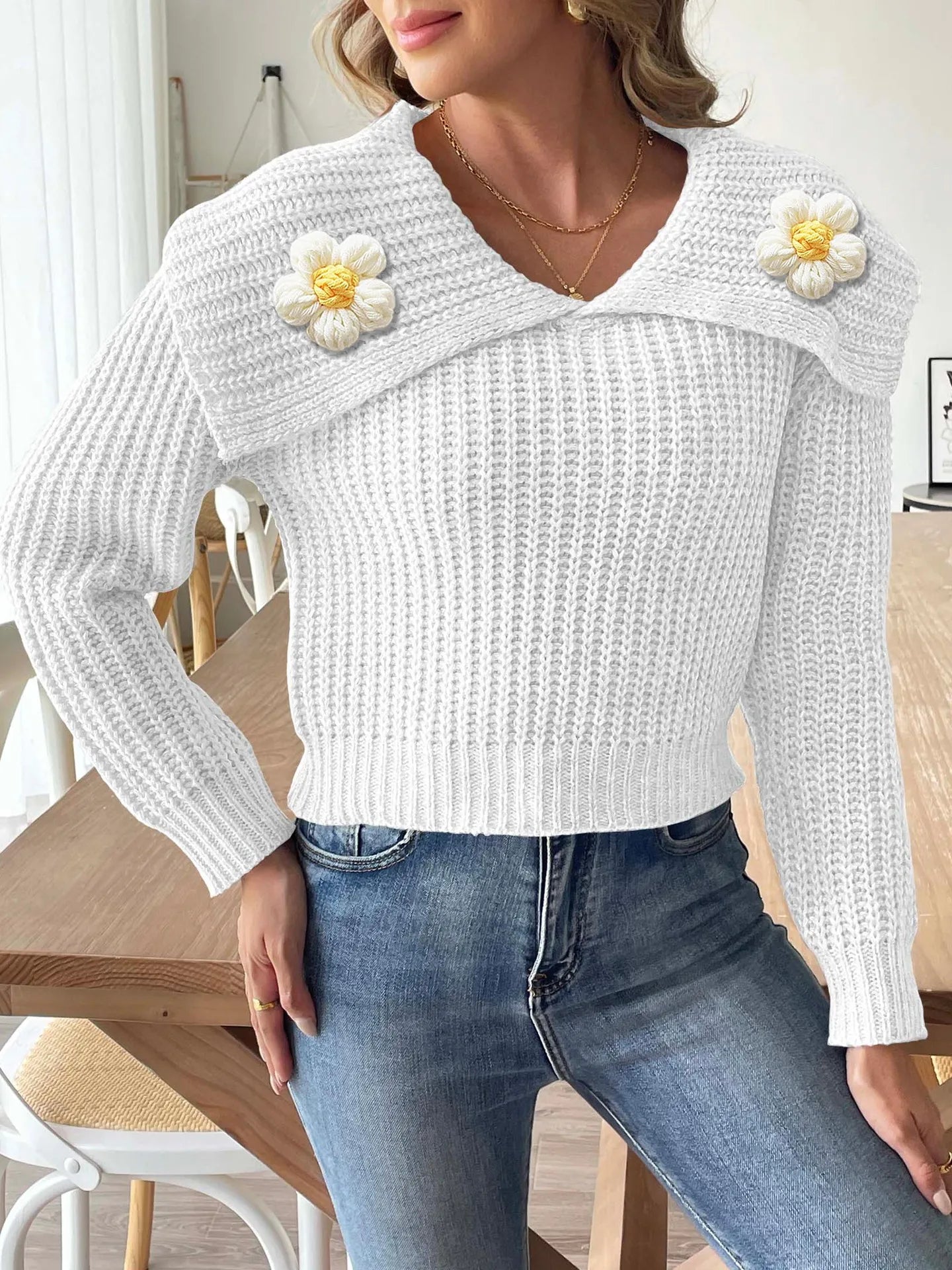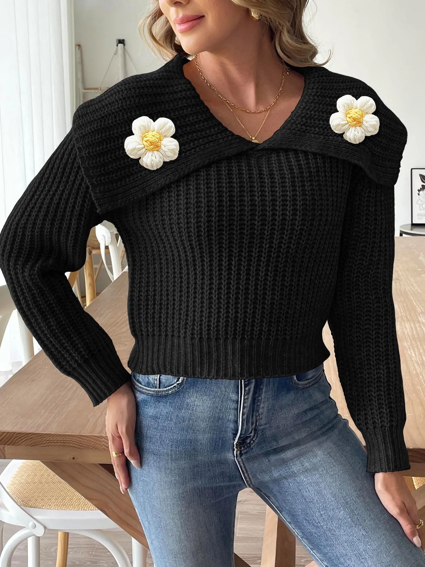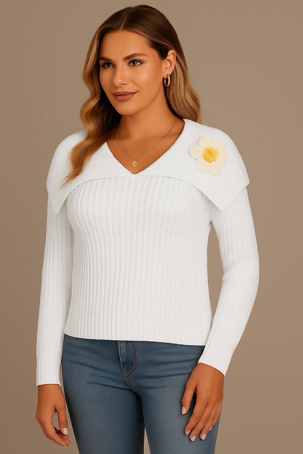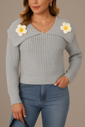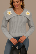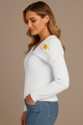 Sweet but far from basic — this floral-detailed knit brings a playful charm to your everyday layers.