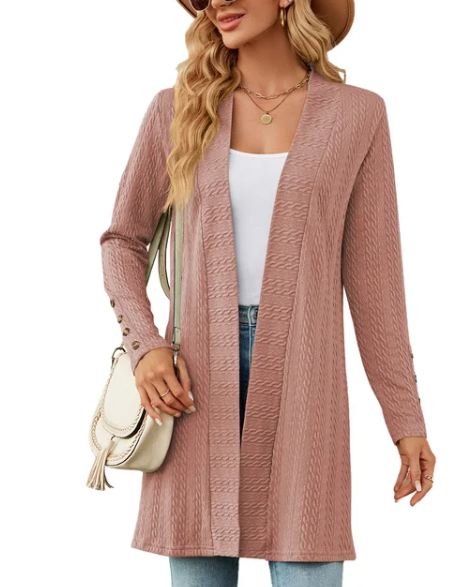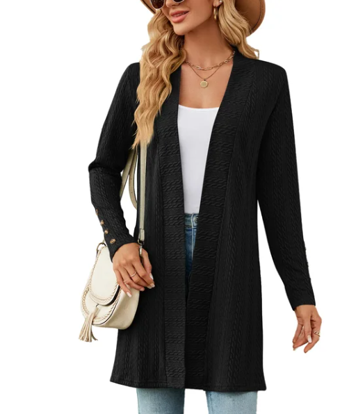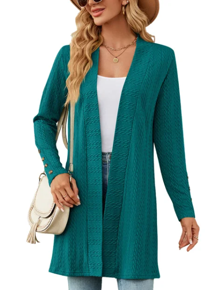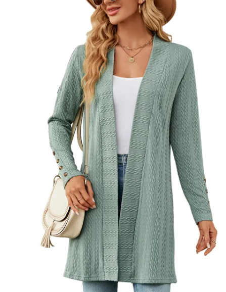 Stylish Details: The cardigan may feature stylish details such as ribbed cuffs and hem, button closures, or patch pockets, adding visual interest and sophistication to the design.