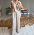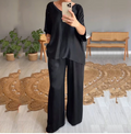 Matching Top: Accompanying the pants is a matching top with a loose and flowy fit, creating a coordinated look that is both chic and effortless.