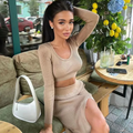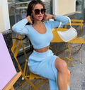Coordinated Skirt: Complementing the top, the set comes with a matching knitted skirt designed to flatter your figure and create a polished ensemble. The skirt offers a comfortable fit and falls gracefully, providing effortless movement and style.