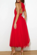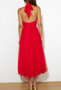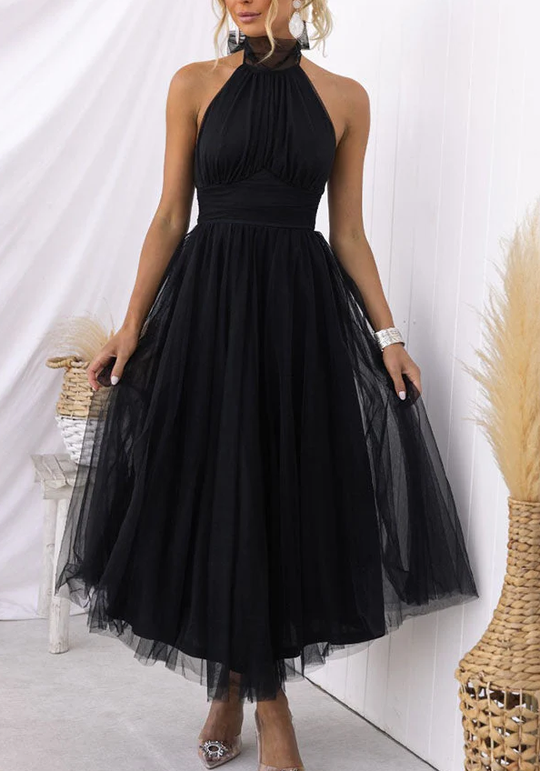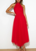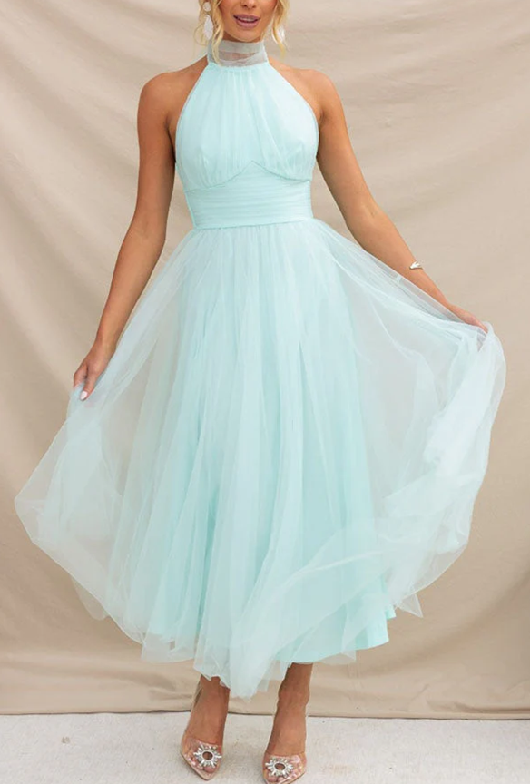 A soft, whimsical masterpiece designed to bring out your inner glow. This floaty tulle maxi dress features delicate gathered detailing and an adjustable halter neckline for a truly romantic silhouette.