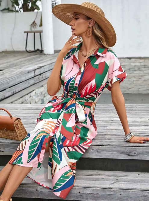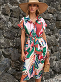 Charming florals meet a classic shirt dress style — this dress adds a touch of femininity with its flattering tie-waist design.