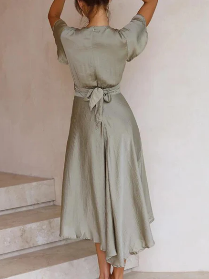 A modern twist on the classic midi dress, with flutter sleeves and a unique knot detail — the perfect blend of elegance and contemporary style.
