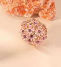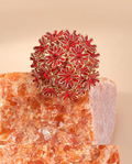With radiant tones and vintage charm, this floral-inspired ring features shimmering zircon petals in rich shades of red and pink. Framed in a gold-tone finish, it’s a bold yet graceful piece made to catch the light—and attention.
