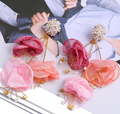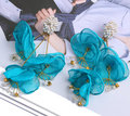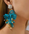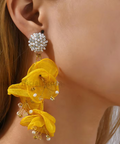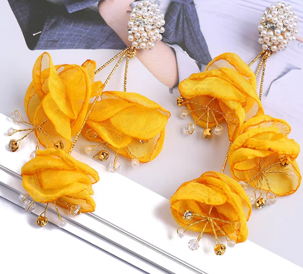 Soft, sculptural, and gracefully detailed — these long dangle earrings feature delicate yarn flower charms that bring a romantic, whimsical finish to your look. Designed to move with you, they add feminine flair to both weddings and everyday elegance.