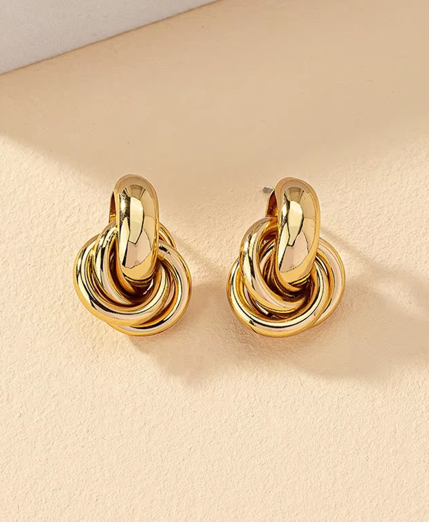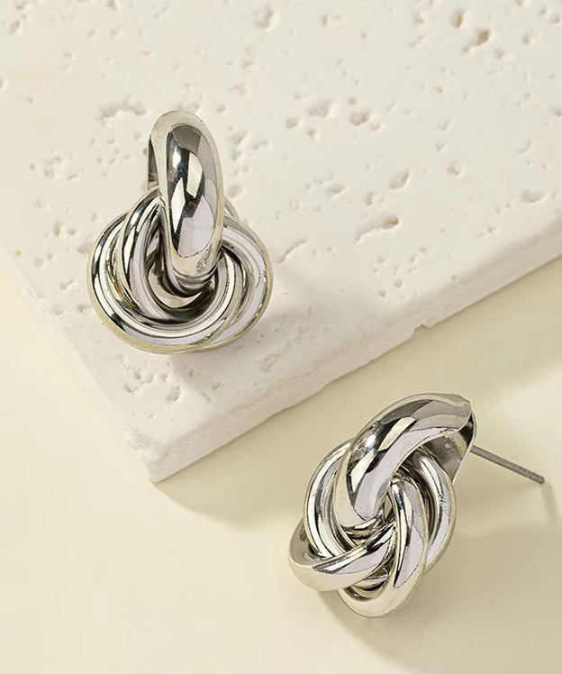 Simple, sculptural, and effortlessly chic — these shiny gold or silver-tone knot hoops bring a touch of refined edge to your everyday look. Designed to feel both playful and polished, they’re the kind of piece you'll reach for on repeat.