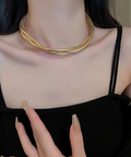 A bold, sculptural statement with sleek curves—this collar-style necklace brings high-impact elegance to any look.