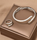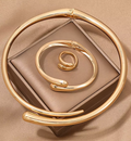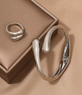 Sleek, sculptural, and striking—this coordinated set of geometric torques, bangles, and rings adds a modern edge to any look with its smooth teardrop-inspired design.
