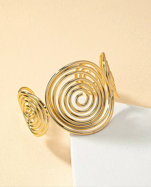 A bold yet refined accent, this geometric metal bracelet channels vintage charm with a contemporary edge—perfect for day-to-night elegance.