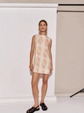 Step into timeless charm with the Gwen Chic Dress, featuring a playful floral design in pink. This sleeveless dress is crafted from lightweight polyester, offering both comfort and elegance, perfect for any casual or semi-formal occasion.