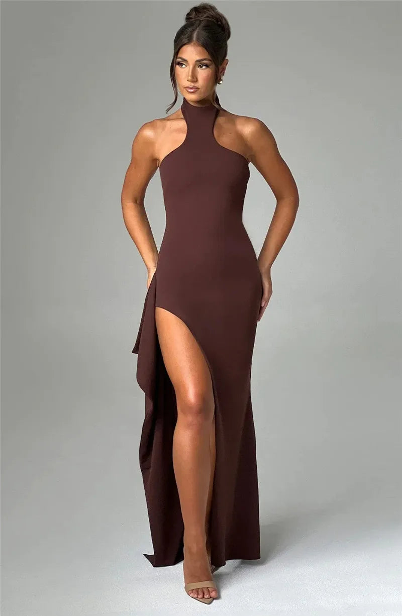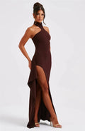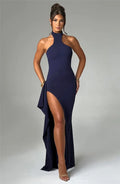 This is our Halterneck Sculpted Slit Gown