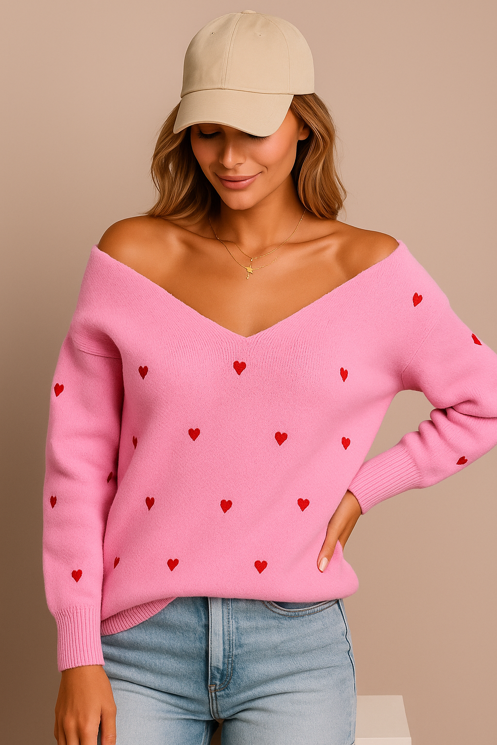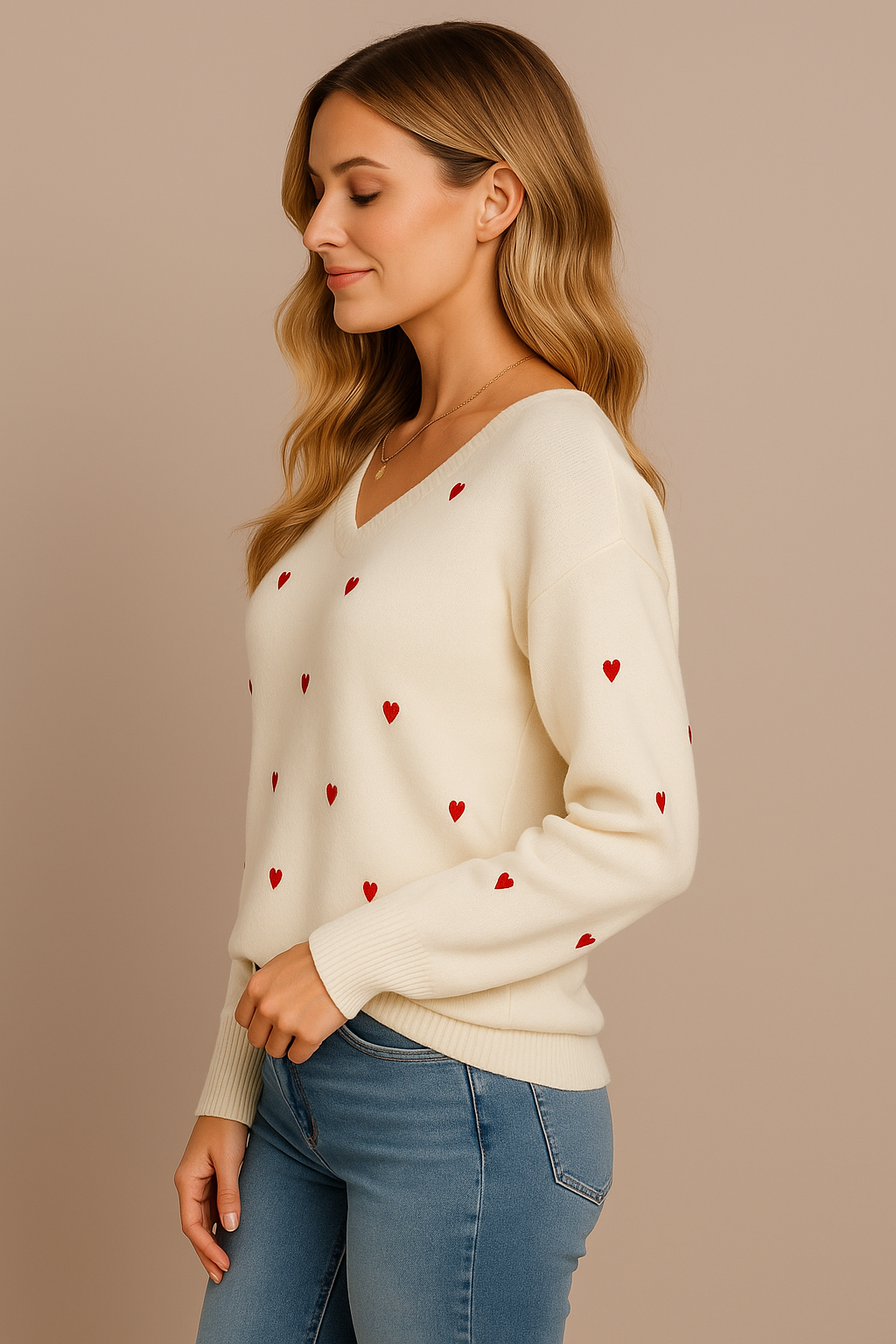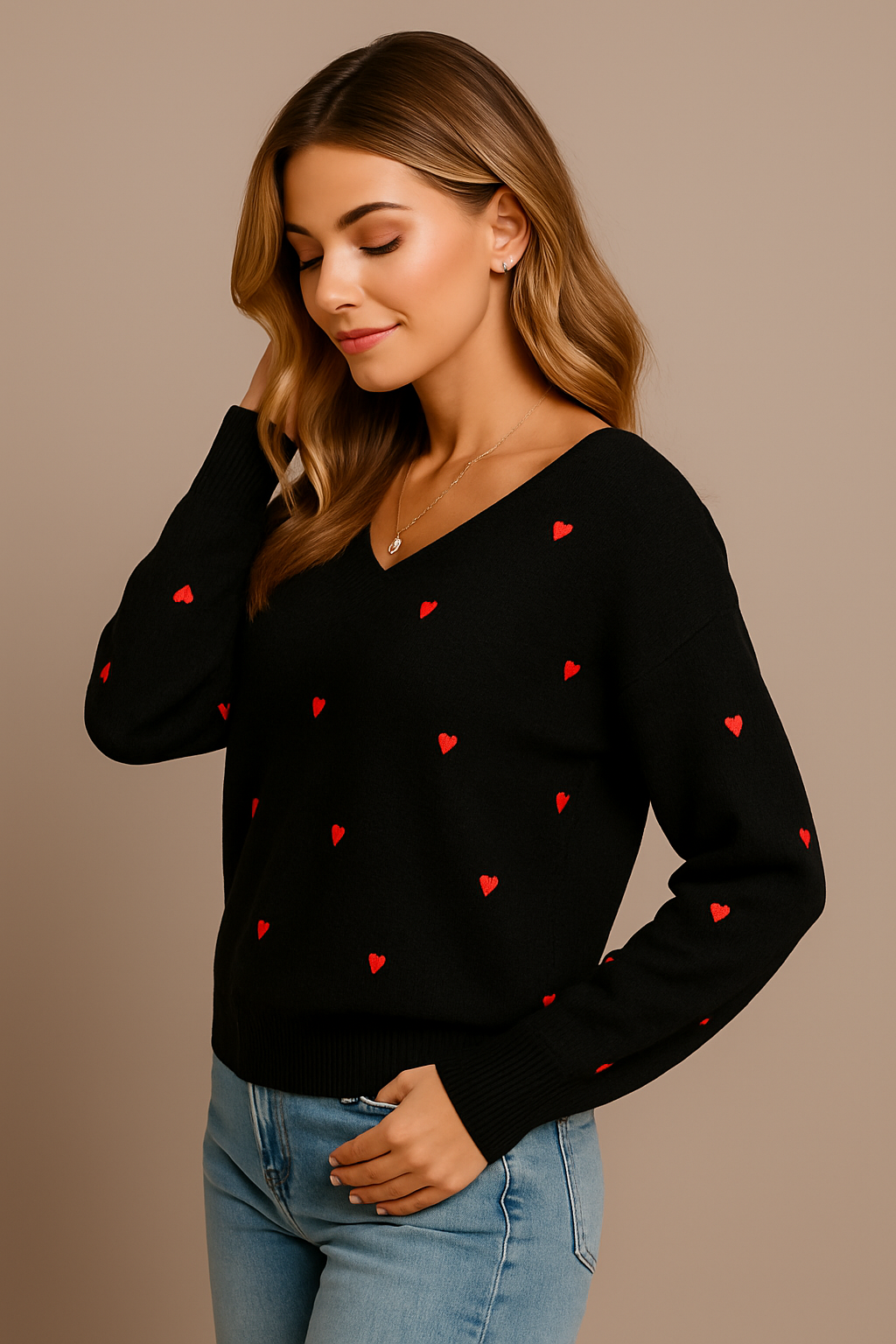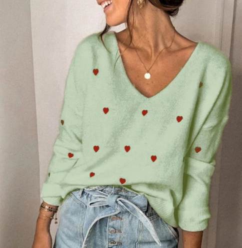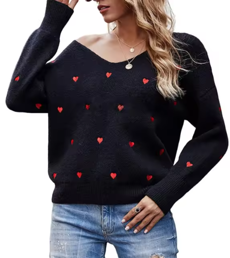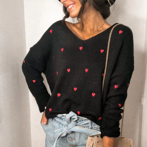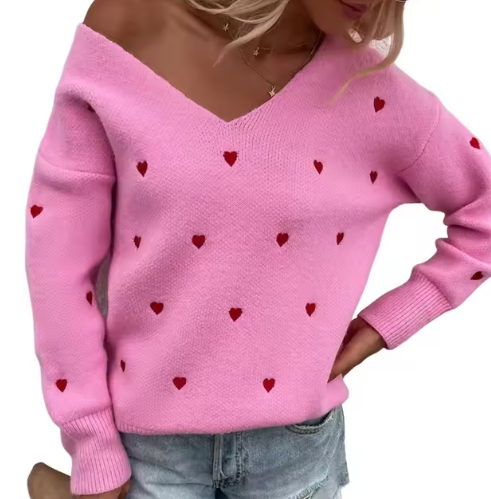 This is our Heart Pattern Knit V-Neck Sweater